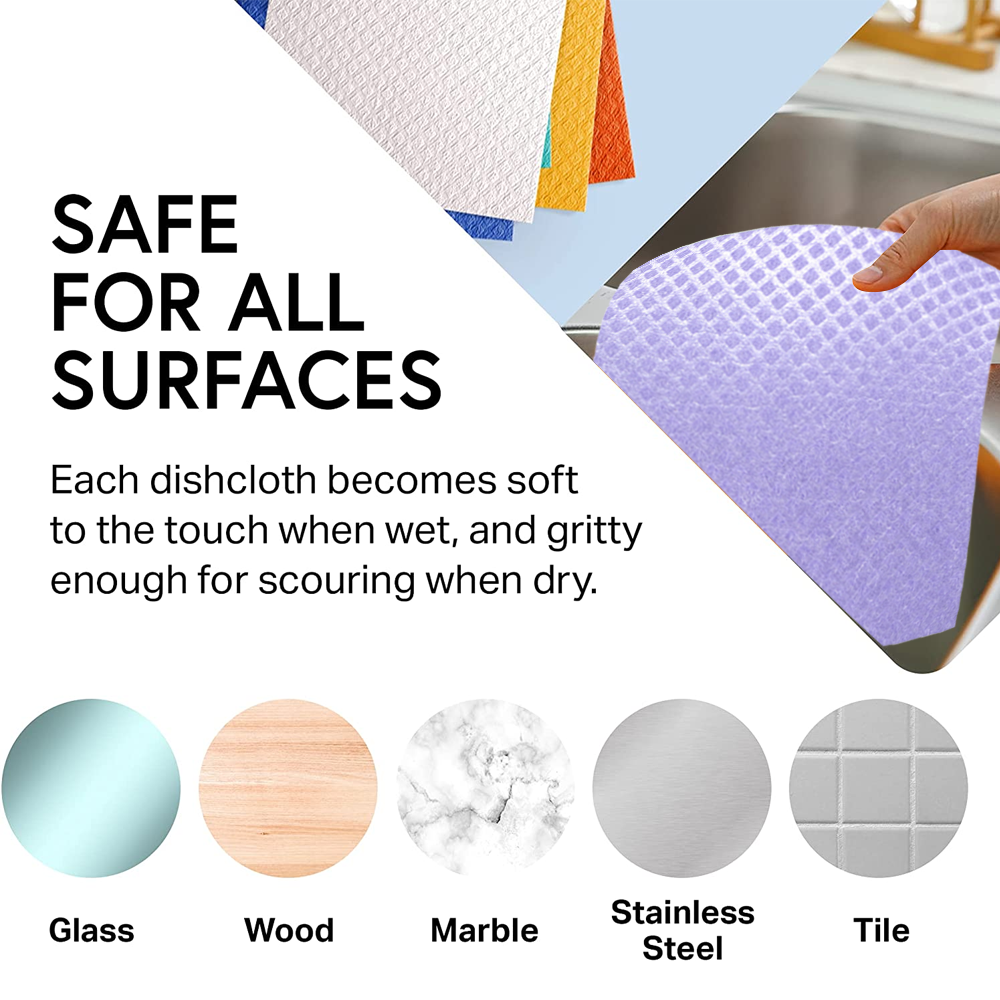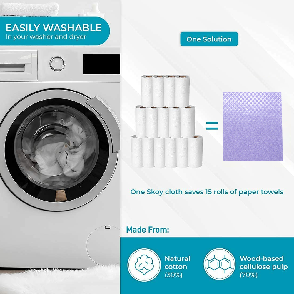3.【LÄTT ATT RENGÖRA】 Placera helt enkelt den svenska svampduken på det översta stället i en diskmaskin eller släng den i din tvättmaskin och lufttorka för att undvika att den krymper. Mjuk vid beröring, motståndskraftig mot lukt, hållbar och säker tvättmaskin gör våra svenska tvättlappar till de bästa diskhanddukarna för ditt kök!