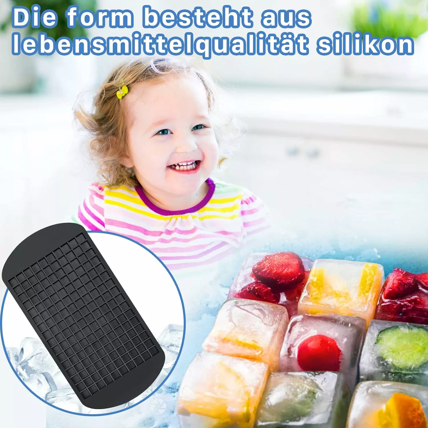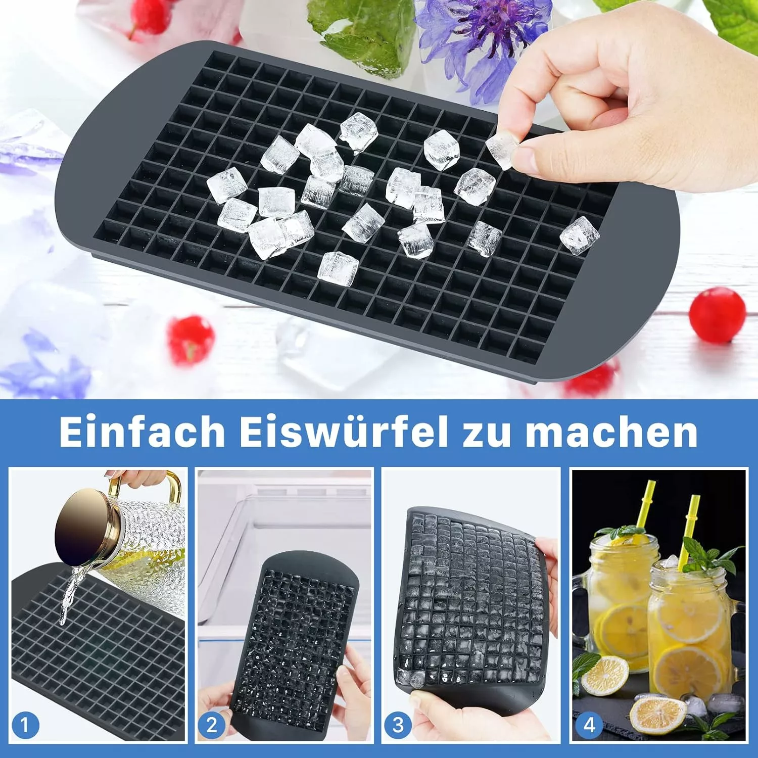 Snabb frysning: 160 iskubsbrickor producerar mindre 1 cm isbitar, den lilla kubformen fryser vattnet mycket snabbt, vilket minskar hela frystiden och kan möta kraven på ett snabbt liv.