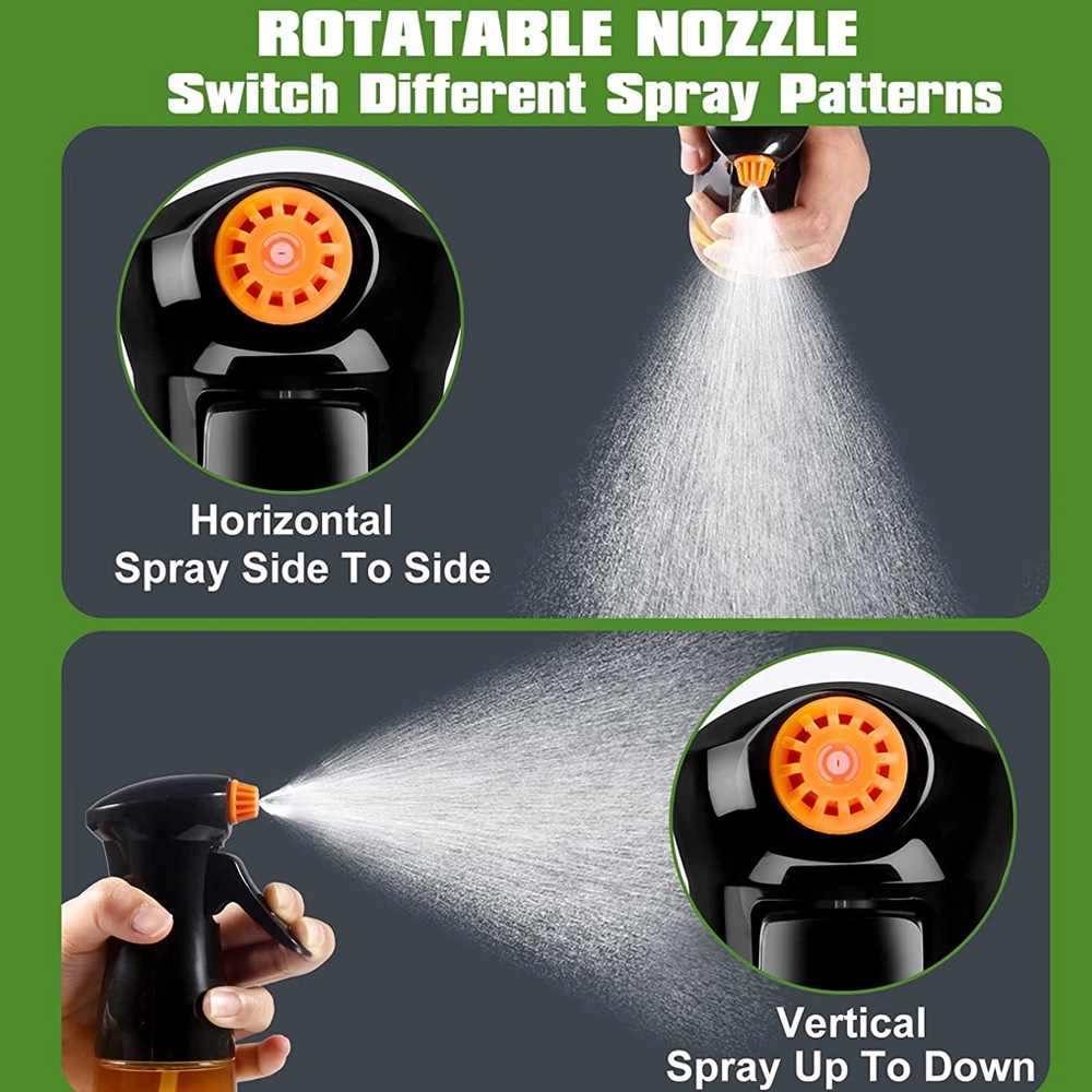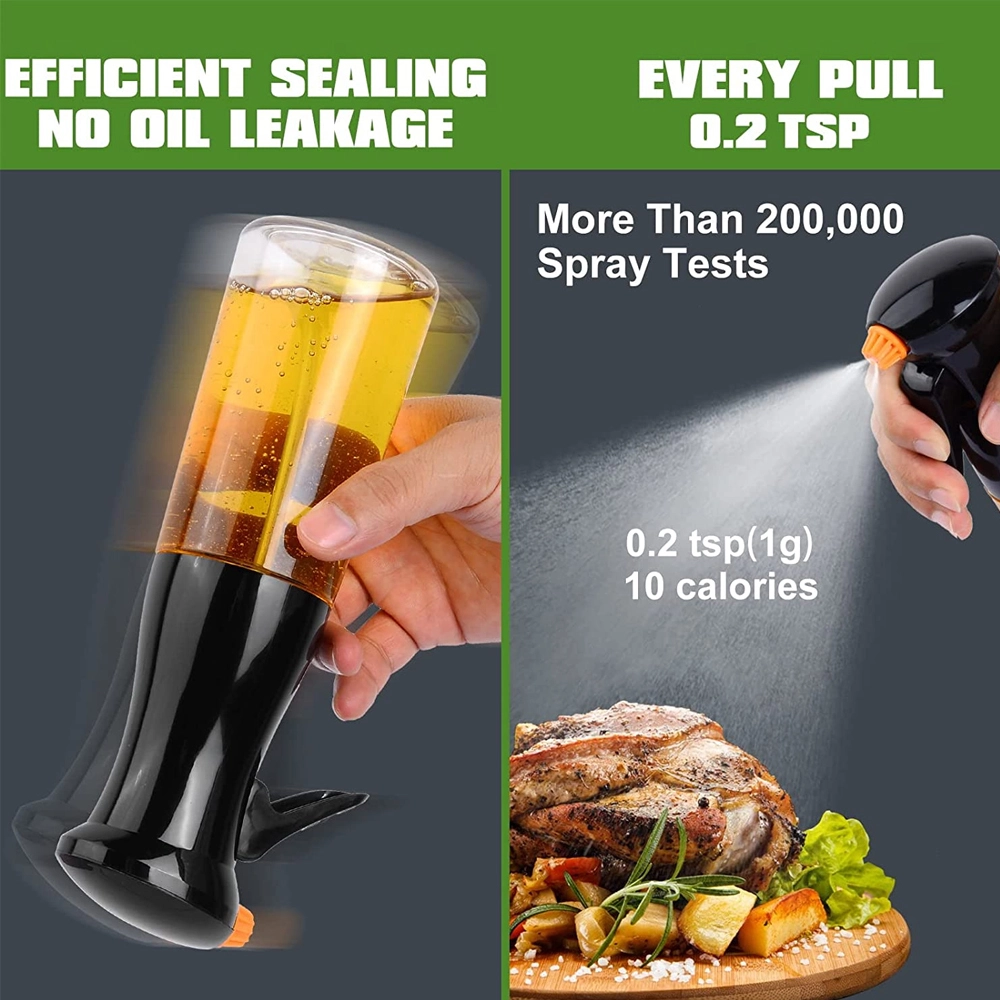 2. Oljespray för multi ändamål – oljesprayflaska är lämplig för matolja, citronsaft, sojasås, etc. Praktiska köksprylar kan hjälpa dig att uppnå solfjäderformad finfördelningsspray. Den används ofta för grillning, sallad och bakning. Matoljesprayen är mycket populär bland kockar, gourmeter och fitness för sina perfekta tillbehör för luftfriteringspanna.