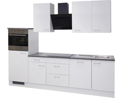 Är du på jakt efter ett nytt kök? Du vill inte ha en färdig produkt utan tycker att det är roligt att ta saken i egna händer? De förkonfigurerade köksinredningarna imponerar med sin design och de många olika funktionerna. Skåpsdörrarna kan hängas på vänster eller höger sida vilket gör det mycket flexibelt för dig vid monteringen. De lättskötta plastfronterna av hög kvalitet och de stabilt konstruerade skåpsstommarna garanterar att du kan ha glädje av köket länge. En bänkskiva i passande design ingår naturligtvis alltid i våra kök. Här är det lätt att hålla ordning Tre 89 cm höga väggskåp med vardera två hyllor ger gott om plats för porslin och glas. I det 50 cm breda bänkskåpet med lådor och dörr, och i det 60 cm breda skåpet för spishäll med två lådor, finns det plats för bestick, kastruller och/eller livsmedel. I diskbänkskåpet finns det också gott om plats för förvaring av köks- eller städredskap. Skulle du någon gång behöva mer plats kan du enkelt utöka köket med ytterligare skåp ur serien med samma namn. Extra snygg och praktisk är det nya demi-inbyggnadsskåpet med högt placerad ugnsnisch och 88 cm hög kylskåpsnisch därunder. För att kamouflera den helintegrerade diskmaskinen finns motsvarande frontpaneler. Vitvaror inklusive I det rymliga kylskåpet finns det gott om plats för livsmedel, som kan fördelas mellan tre fack och en frukt- och grönsakslåda. Frysfacket med 4 stjärnor är bra för långvarig lagring av känsliga livsmedel men även för infrysning. På den eleganta glaskeramikhällen med 4 zoner går det snabbt att laga goda måltider. Den moderna och kraftfulla köksfläkten utan kåpa ser till att matos snabbt bryts ner (för återcirkulation och frånluft). Även den helintegrerade diskmaskinen imponerar gällande viktiga funktioner.