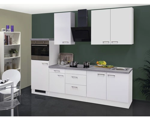 Är du på jakt efter ett nytt kök? Du vill inte ha en färdig produkt utan tycker att det är roligt att ta saken i egna händer? De förkonfigurerade köksinredningarna imponerar med sin design och de många olika funktionerna. Skåpsdörrarna kan hängas på vänster eller höger sida vilket gör det mycket flexibelt för dig vid monteringen. De lättskötta plastfronterna av hög kvalitet och de stabilt konstruerade skåpsstommarna garanterar att du kan ha glädje av köket länge. En bänkskiva i passande design ingår naturligtvis alltid i våra kök. Här är det lätt att hålla ordning Tre 89 cm höga väggskåp med vardera två hyllor ger gott om plats för porslin och glas. I det 50 cm breda bänkskåpet med lådor och dörr, och i det 60 cm breda skåpet för spishäll med två lådor, finns det plats för bestick, kastruller och/eller livsmedel. I diskbänkskåpet finns det också gott om plats för förvaring av köks- eller städredskap. Skulle du någon gång behöva mer plats kan du enkelt utöka köket med ytterligare skåp ur NEO-serien. Extra snygg och praktisk är det nya demi-inbyggnadsskåpet med högt placerad ugnsnisch och 88 cm hög kylskåpsnisch därunder. Vitvaror inklusive I det rymliga kylskåpet, som har en nettovolym på 104 liter, finns det gott om plats för livsmedel, som kan fördelas mellan tre fack och en frukt- och grönsakslåda. Frysfacket med 4 stjärnor rymmer 17 liter och är bra för långvarig lagring av känsliga livsmedel men även för infrysning. På den eleganta glaskeramikhällen med 4 zoner går det snabbt att laga goda måltider. Och den moderna och kraftfulla köksfläkten utan kåpa ser till att matos snabbt bryts ner (för återcirkulation och frånluft).