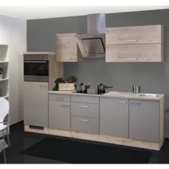 Är du på jakt efter ett nytt kök? Du vill inte ha en färdig produkt utan tycker att det är roligt att ta saken i egna händer? De förkonfigurerade köksinredningarna imponerar med sin design och de många olika funktionerna. Skåpsdörrarna kan hängas på vänster eller höger sida vilket gör det mycket flexibelt för dig vid monteringen. De lättskötta plastfronterna av hög kvalitet och de stabilt konstruerade skåpsstommarna garanterar att du kan ha glädje av köket länge. En bänkskiva i passande design ingår naturligtvis alltid i våra kök. Här är det lätt att hålla ordning Det 55 cm höga väggskåpet med ett hyllplan och de båda trendiga överskåpen med klaffluckor med en höjd på vardera 32 cm ger gott om plats för porslin och glas. I det 50 cm breda bänkskåpet med lådor och dörr, och i det 60 cm breda skåpet för spishäll med två lådor, finns det plats för bestick, kastruller och/eller livsmedel. I diskbänkskåpet finns det också gott om plats för förvaring av köks- eller städredskap. Skulle du någon gång behöva mer plats kan du enkelt utöka köket med ytterligare skåp ur RIVA-serien. Extra snygg och praktisk är det nya demi-inbyggnadsskåpet med högt placerad ugnsnisch och 88 cm hög kylskåpsnisch därunder. Vitvaror inklusive I det rymliga kylskåpet finns det gott om plats för livsmedel, som kan fördelas mellan tre fack och en frukt- och grönsakslåda. Frysfacket med 4 stjärnor är bra för långvarig lagring av känsliga livsmedel men även för infrysning. På den eleganta glaskeramikhällen med 4 zoner går det snabbt att laga goda måltider. Och den moderna och kraftfulla köksfläkten utan kåpa ser till att matos snabbt bryts ner (för återcirkulation och frånluft).