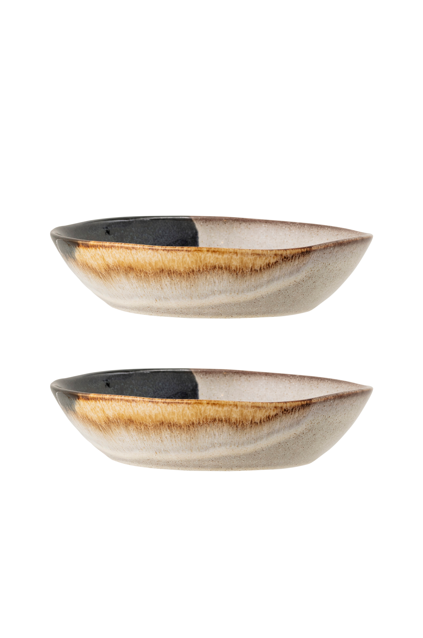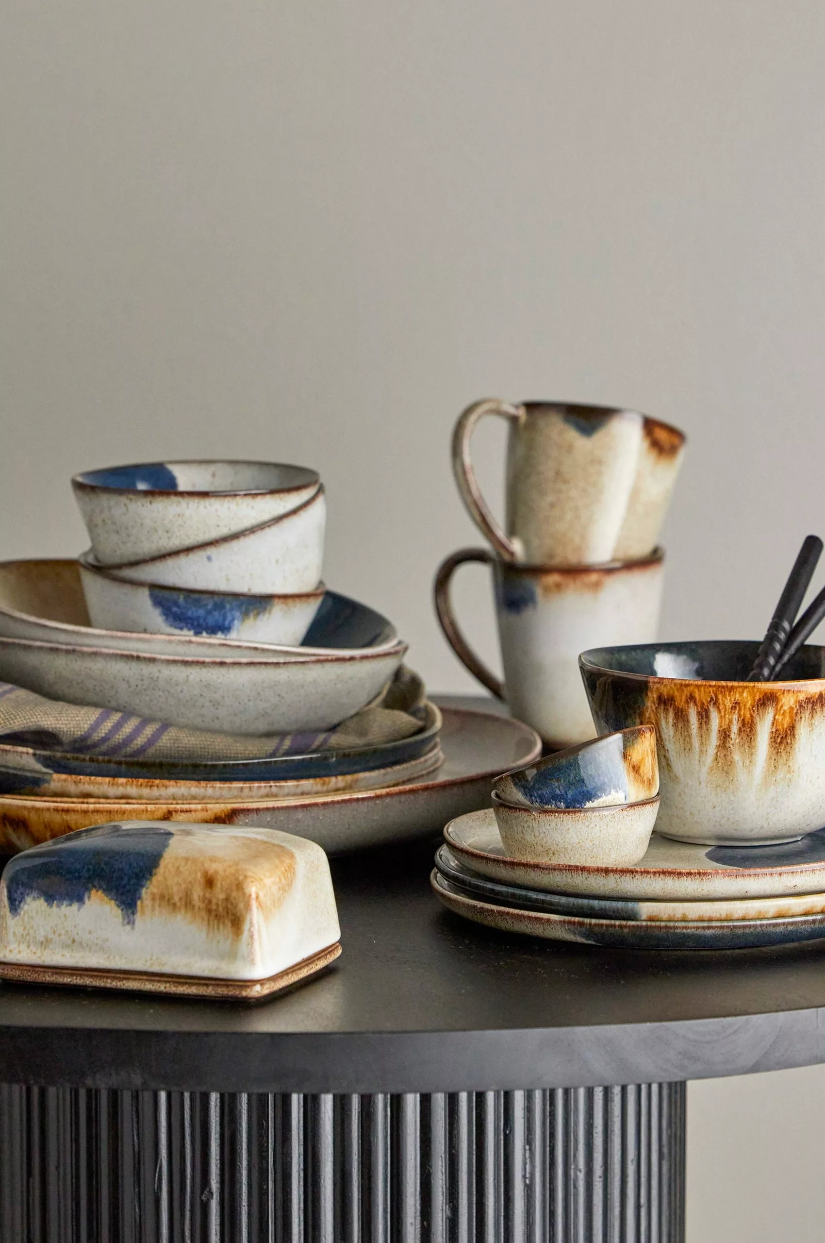 Jules skålar Bloomingville är vackra, handgjorda produkter av stengods med unik glasering i flera färger. Du kan ge bordet en konstnärlig känsla med denna estetiska kombination av kryddiga currytoner och djup, havsblå färg. Tål maskindisk och mikrovågsugn.