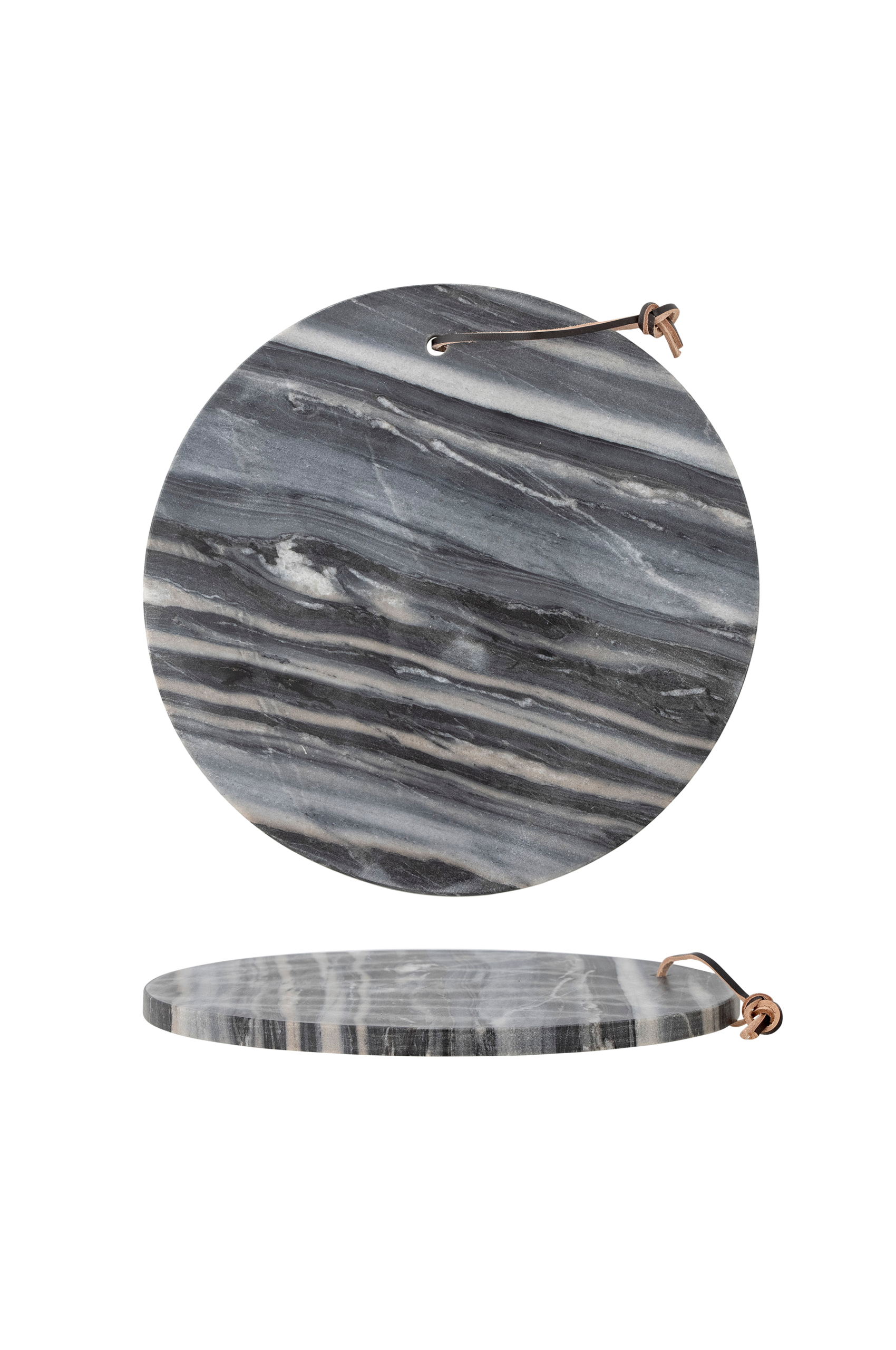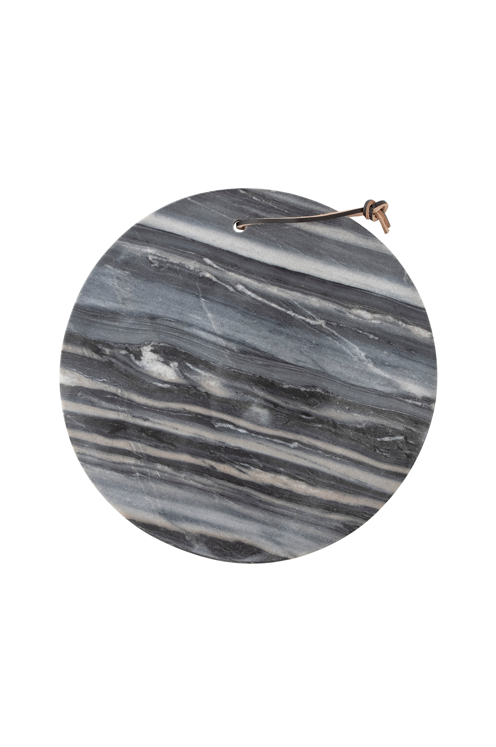 Lemoni skärbräda är en vacker, rund skärbräda av grå marmor. Det exklusiva utseendet och de vackra grå nyanserna gör den perfekt som serveringsbricka och som dekoration i köket.