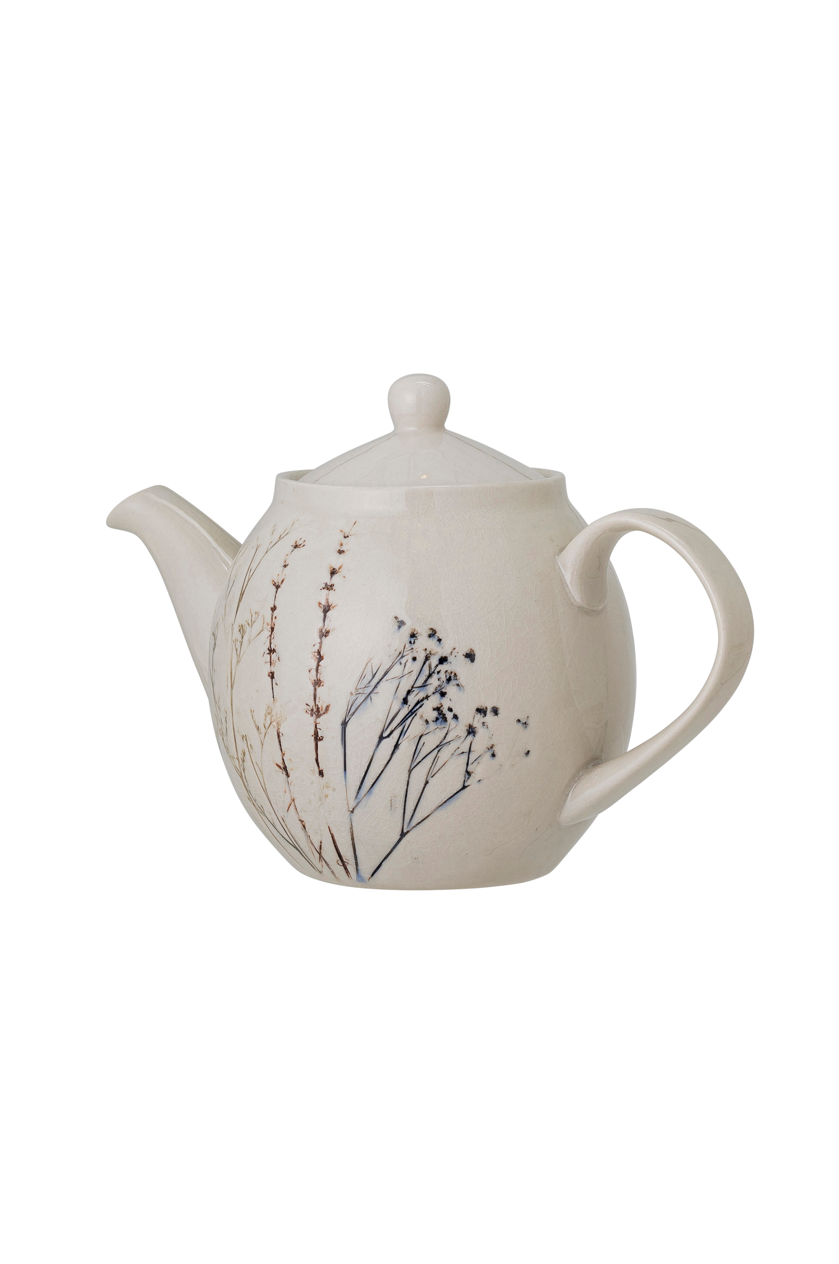 Bea tekanna Bloomingville är en unik kanna av stengods i naturfärg med ett vackert, tryckt blommotiv på den krackelerade glaseringen. Eftersom produkten är handgjord är varje produkt unik. Rymmer 1,2 liter. Tål maskindisk.