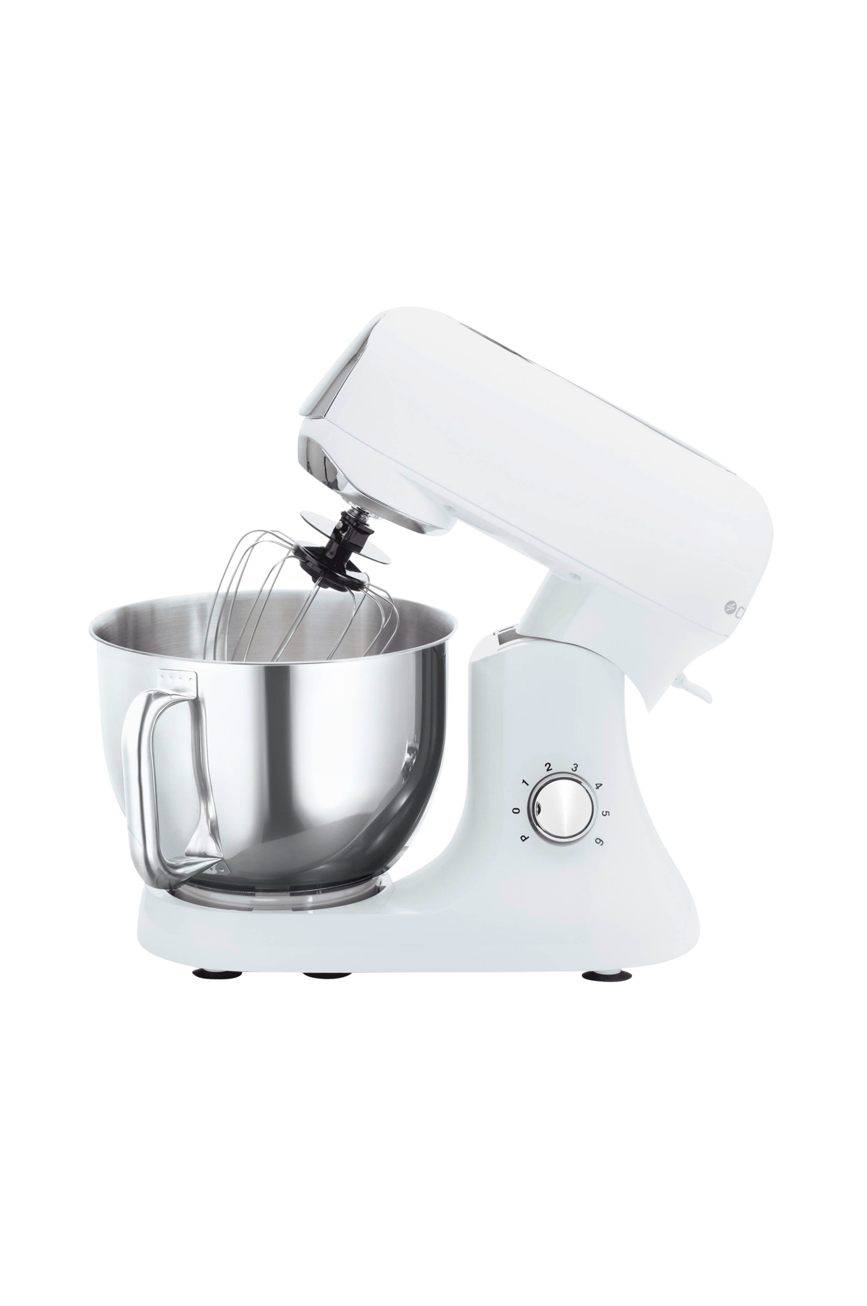 Med Champions köksmaskin i metall kan du njuta av alla fördelar en kompetent köksmaskin kan erbjuda dig i köket. Den kraftfulla motorn på 1200W och konstruktionen i metall ger hållbarhet och stabilitet – med denna maskin finns inga begränsningar. Använd till att knåda deg, göra glass, vispa grädde eller blanda det perfekt potatismoset. Välj mellan 3 olika tillbehör att använda till den rostfria skålen på 6L – här har du plats att baka till hela familjen. Välj mellan de 6 olika hastigheterna samt pulsfunktion för att ställa in köksmaskinen efter dina behov. Specifikationer: – Effekt: 1200W – Skål: 6L, rostfritt stål m. handtag – Kapacitet: 1,2kg – Planetarisk blandning – Tillbehör: stänkskydd, visp, degkrok och spatel/platt visp – Hastigheter: 6st samt pulsfunktion – Valbara tillbehör: köttkvarn m. pastatillbehör (2 st) – Överbelastningsskydd – Säkerhetslås – Gummifötter – Kabellängd: 1m – Decibel: 80-90db – Vikt: 6,6kg – Mått: 40,6×26,8×36,1 cm – Färg: Shiny White