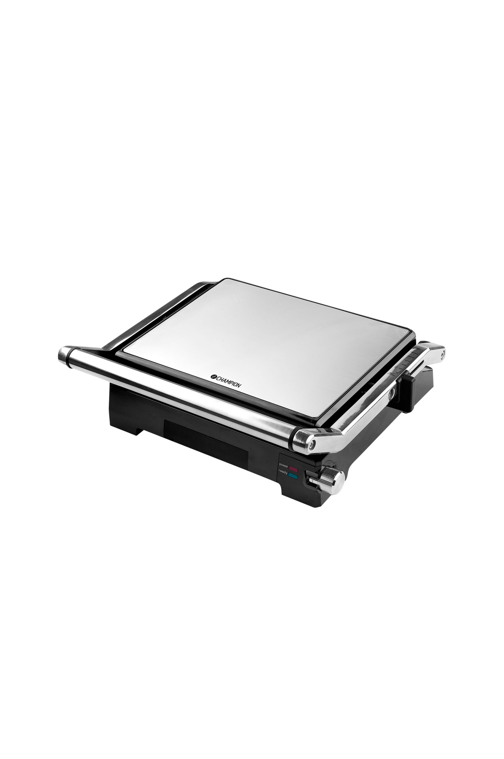 Njut av grillad mat och smörgåsar med Champion CHPG300 Paninigrill. Resultatet blir perfekt varje gång – tack vare den jämna värmefördelningen och den höga effekten på 2000W. Med den inbyggda termostaten kan du justera din tillagning precis så som du vill ha den. De stora grillplattorna med non-stick beläggning gör rengöringen enkel. Torka bara av plattorna och töm behållaren på överflödigt fett och smulor så är du redo för nästa grillning. Champion CHPG300 är utrustad med flexibla gångjärn som automatiskt justeras efter höjden på din smörgås eller mat. Paninigrillen kan öppnas till 180°G vilket gör att den kan användas som ett stort stekbord/grill. Grillen passar utmärkt för paninis, stora smörgåsar, hamburgare, kyckling etc. Endast fantasin sätter gränser för vad du kan tillaga i Champion CHPG300 panini/kontaktgrill. – Lock och handtag i rostfritt stål – Lätt att rengöra – Cool Touch -handtag – 2 stora grillplattor med non-stick beläggning – Möjlig att öppna till 180° – Automatiskt justerande gångjärn – Justerbar termostat – Integrerat fettdropp-system – Bas med kabelförvaring – Tydliga indikatorlampor som visar när grillen är redo att användas – Stabil konstruktion som gör att den står säkert – Effekt: 2000 Watt – Mått grillyta: 29×23 cm
