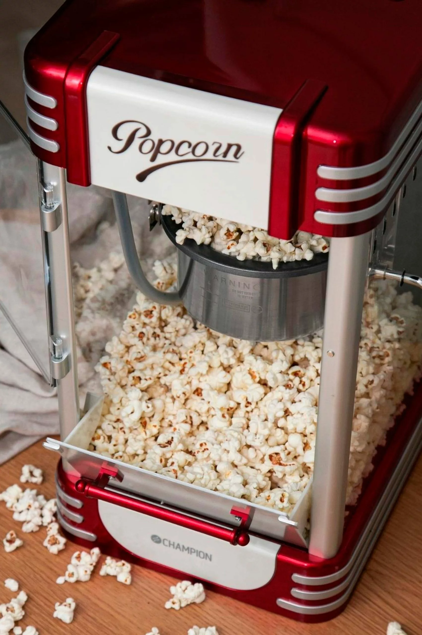 Popcornmaskin Retro för dig som vill göra goda popcorn med biografkänsla hemma. Maskinens fönster och belysning gör det enkelt att följa poppningen och på ett par minuter har du krispigt goda popcorn.