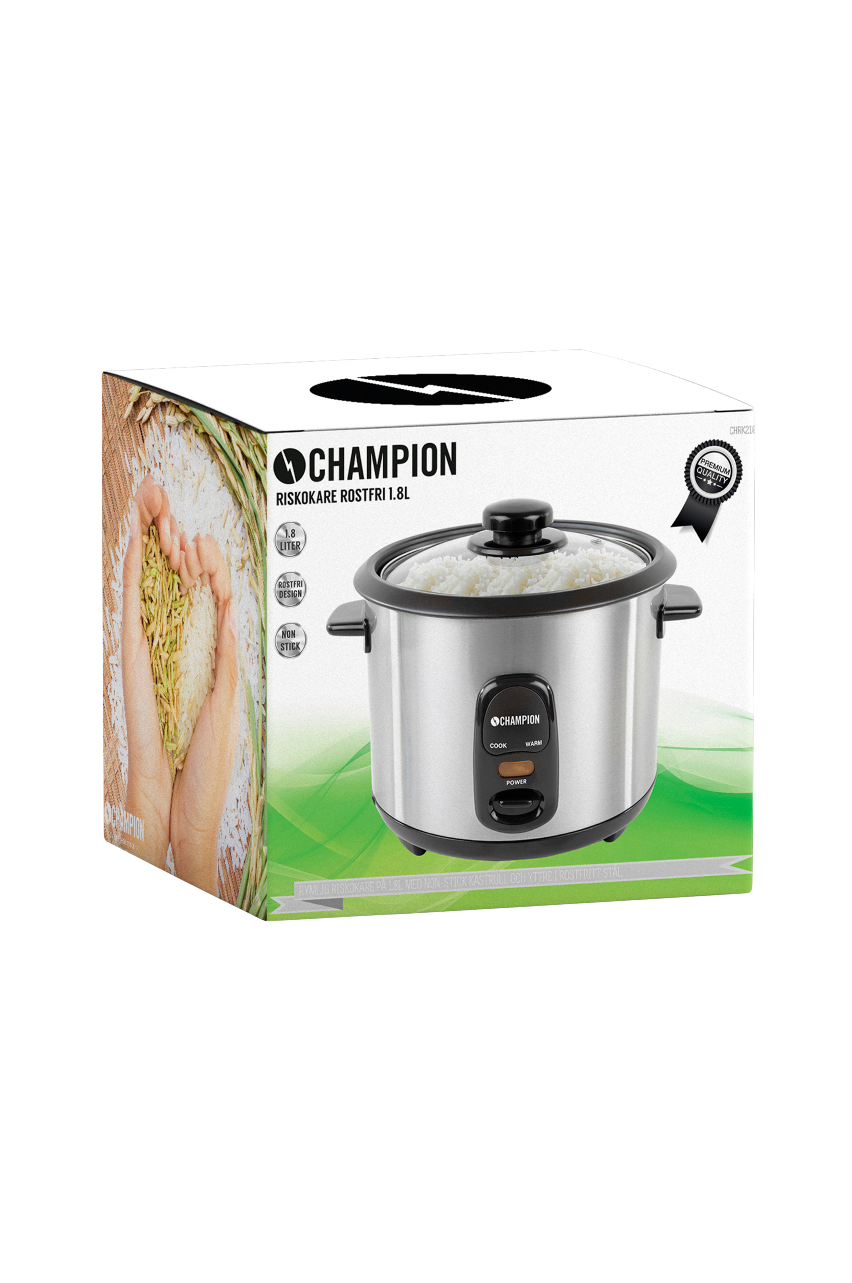 Vill du ha perfekt ris varje gång och slippa övervaka spisen? Då är Champion CHRK210 Riskokare den ultimata produkten för dig. En riskokare har mängder med fördelar utöver ett perfekt tillagat ris. Den sparar energi, du slipper risken med kladd på spisen och dessutom är kastrullen riktigt enkel at rengöra. Denna stilrena riskkolare har en kapacitet på hela 1,5 liter. Med en hög effekt på 500W blir kastrullen snabbt uppvärmd vilket snabbar på tillagningstiden. – Kapacitet: 1,5 liter – Hölje i rostfritt stål – Glaslock – Non-Stick innerkastrull – Levereras med mätkopp och plastspatel – Effekt 500W – Varmhållningsfunktion – Automatisk avstängning