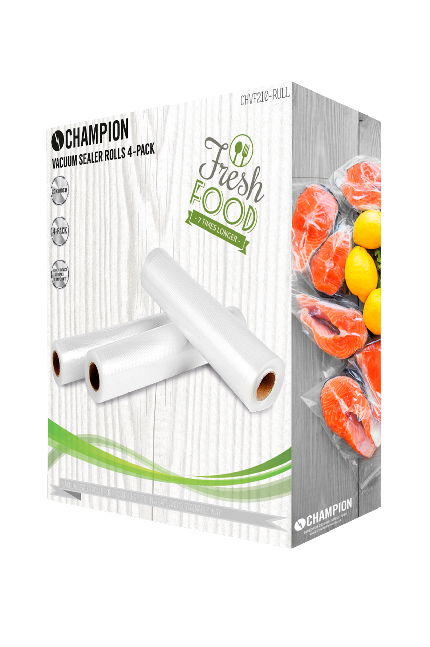 Med Champions rullplast anpassar du vakuumpåsarna till önskad storlek för att förpacka din mat på ett säkert och hållbart sätt. Påsarna kan användas i mikrovågsugn samt i sjudande vatten, vid t.ex. Sous Vide-tillagning och kan frysas. Kan med fördel återanvändas och tål maskindisk.