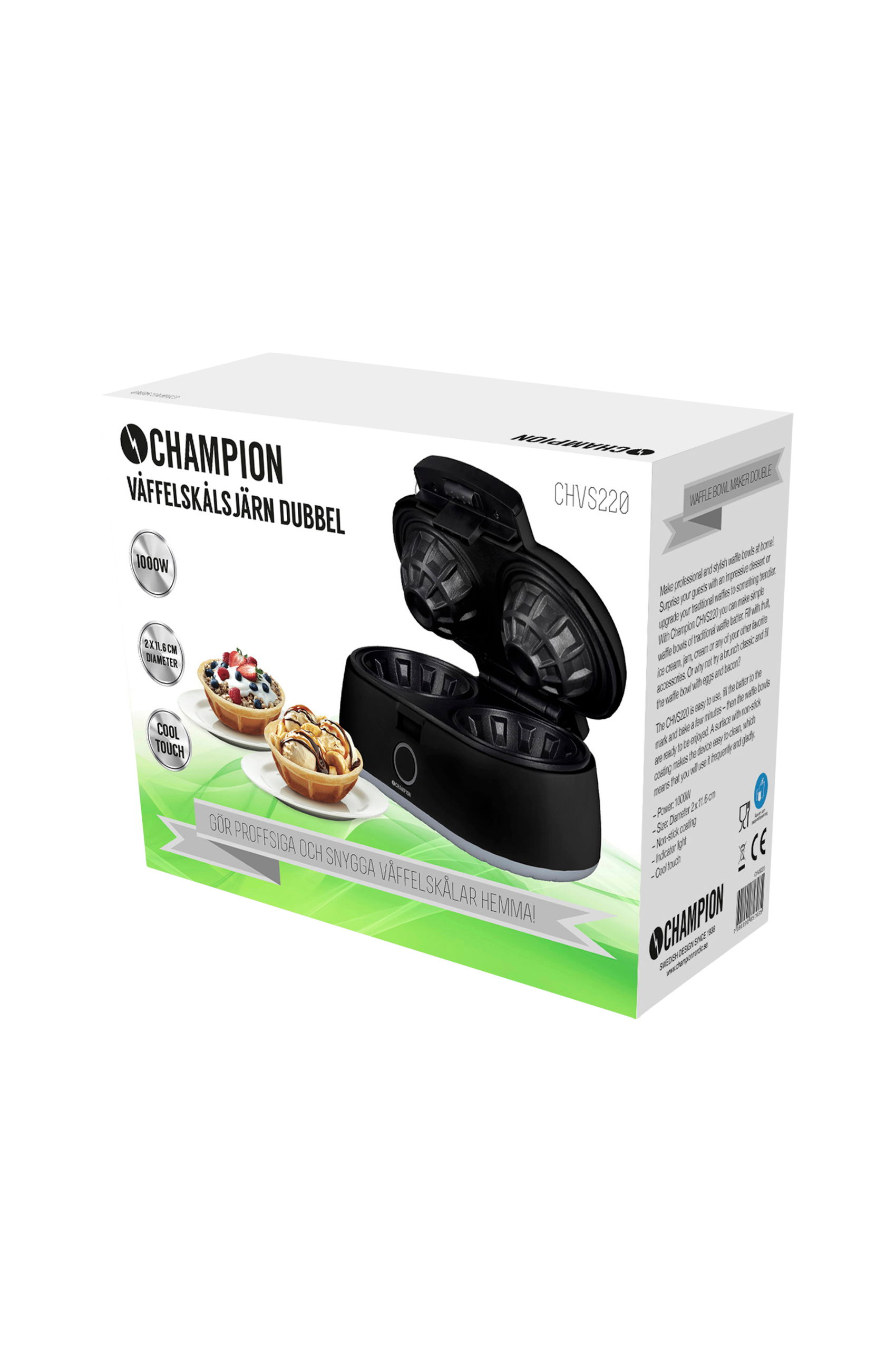 Gör proffsiga och snygga våffelskålar hemma! Överraska dina gäster med en imponerande dessert eller uppgradera dina traditionella våfflor till något mer trendigt. Med Champion CHVS220 gör du enkelt våffelskålar av traditionell våffelsmet. Fyll med frukt, glass, sylt, grädde eller något av dina andra favorittillbehör. Eller varför inte prova en brunchklassiker och fyll våffelskålen med ägg och bacon?