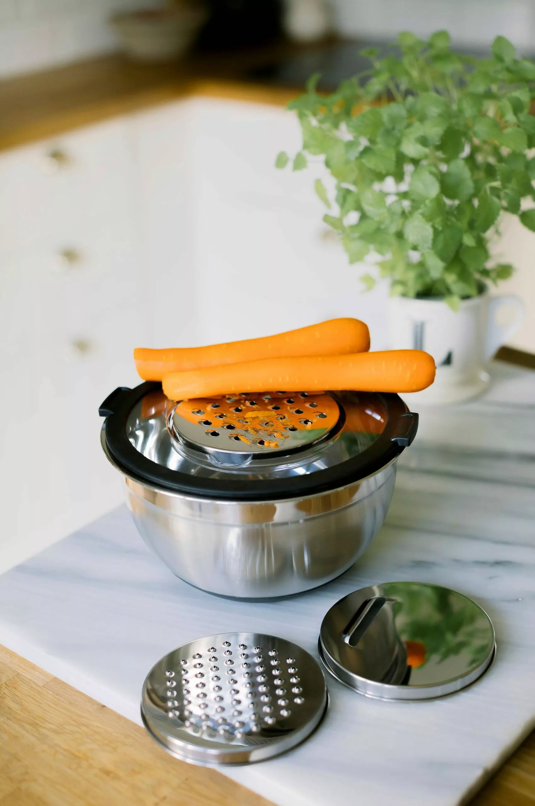Betje Bunke rostfritt stål med lock & tre olika rivjärn. 3 liter