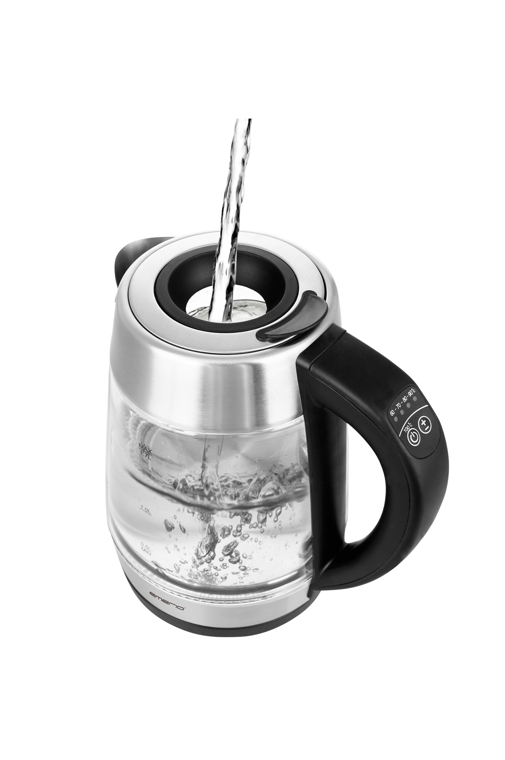 Denna mycket snygg vattenkokare är dels utrustad med temperaturinställning men det unika med den är att den även har smart lid