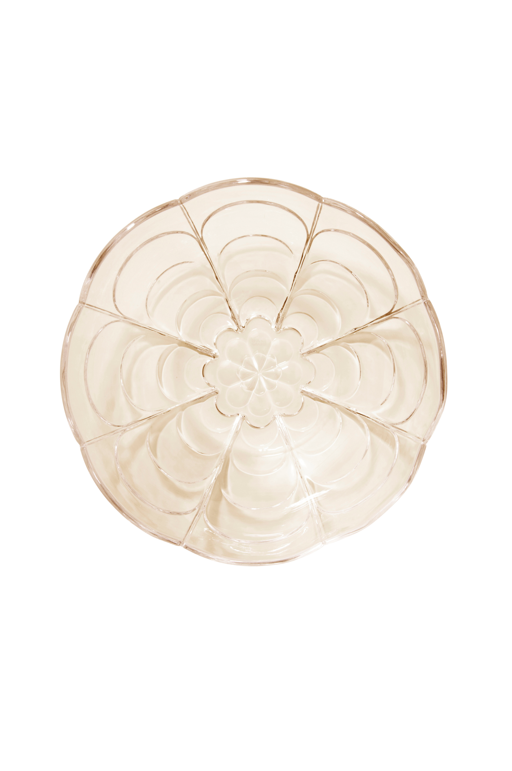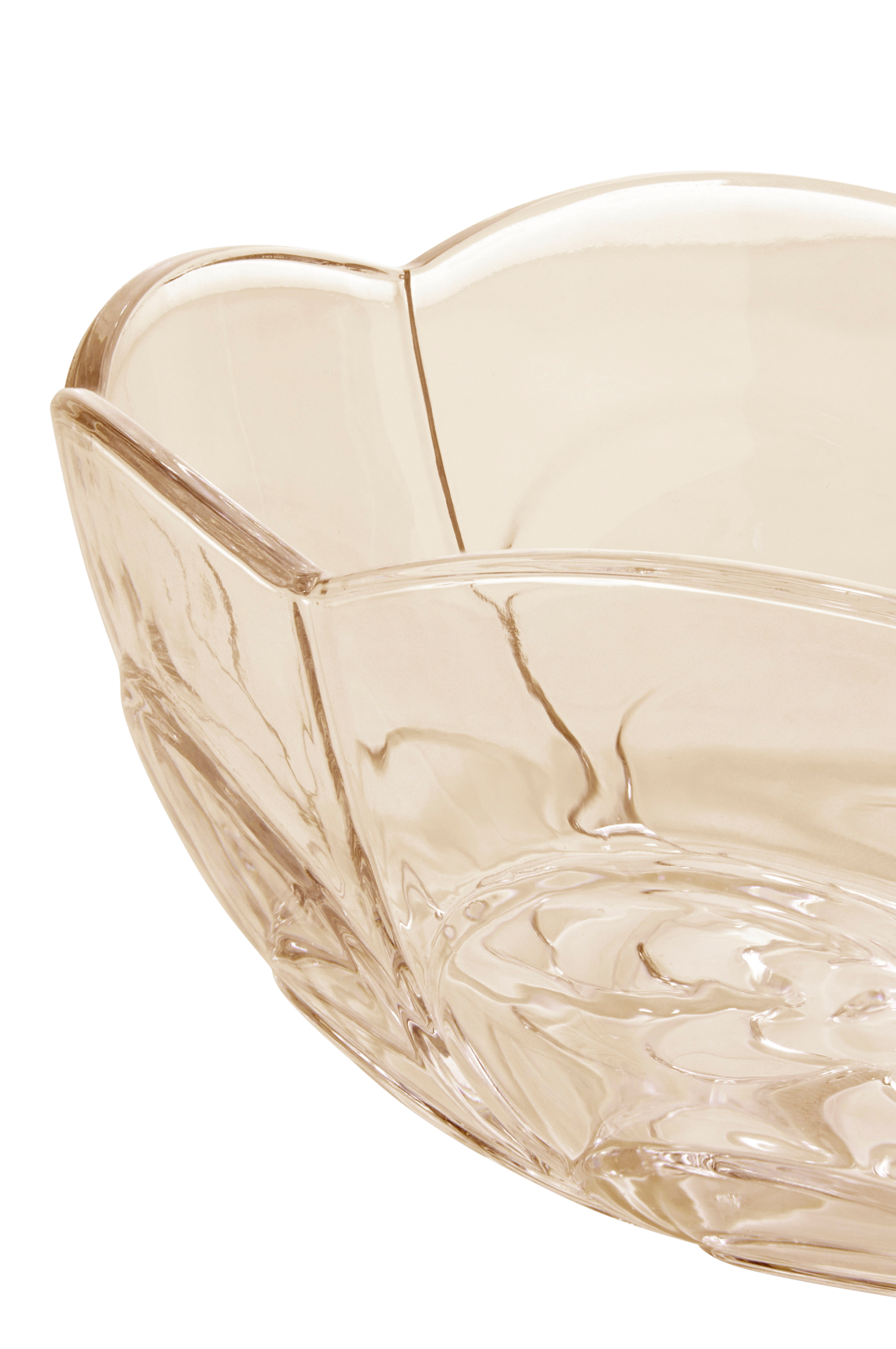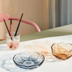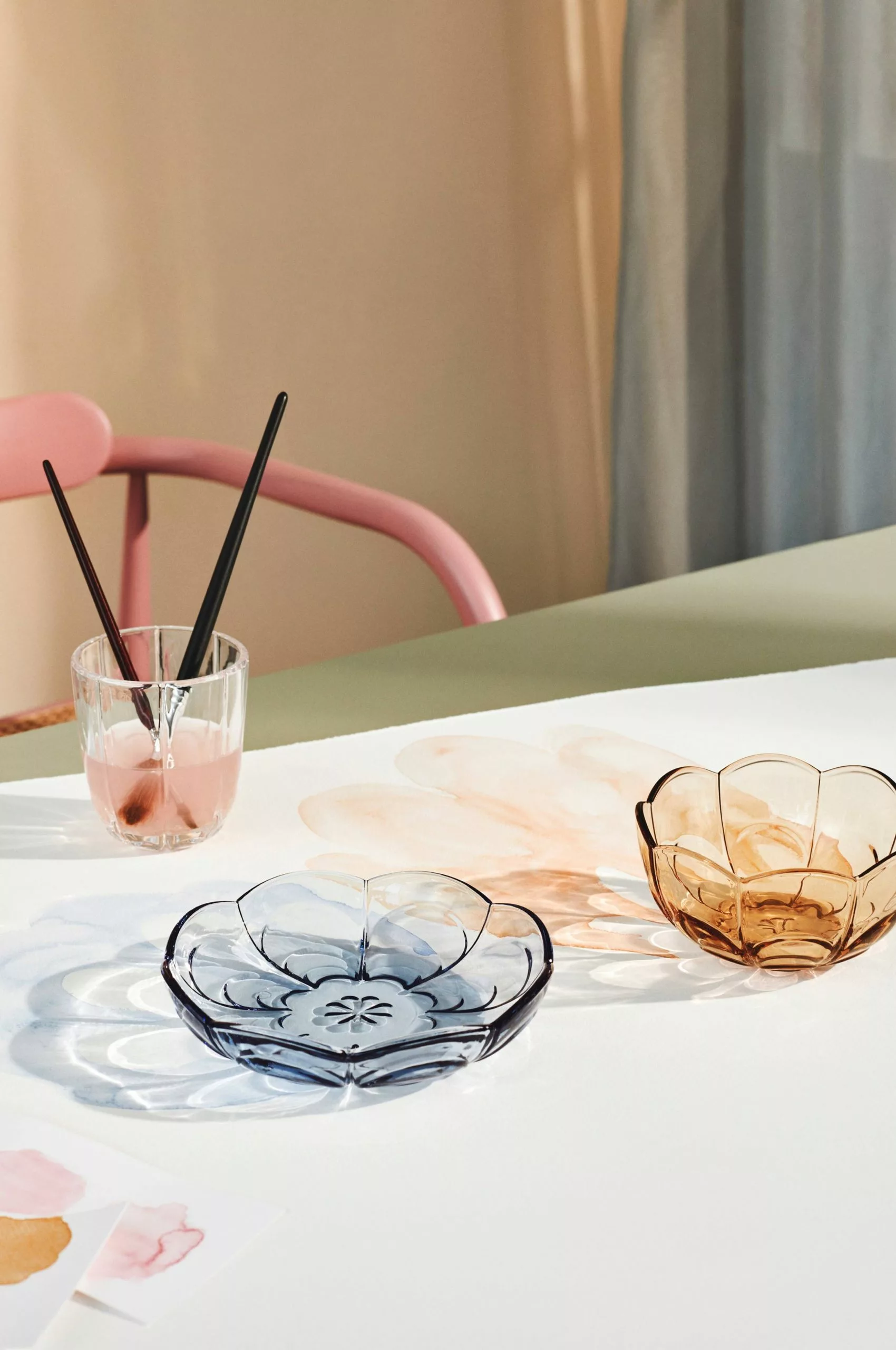Holmegaards lily-serie är inspirerad av näckrosens olika skeden och har samma ljusa och poetiska uttryck som själva den vackra blomman. Glasskålen har en diameter på 23 cm och är perfekt för en gammaldags äppelkaka med rostad havre, vispad grädde, äppelmos och sylt på toppen. Eller till en fruktsallad, grönsallad eller som fruktskål. Blommönstret sticker ut som en relief i det formpressade glaset som är både transparent och taktilt. Linjerna i designen är enkla, mjuka och organiska men på ett strömlinjeformat och stilfullt sätt som skapar en fin balans mellan en romantisk och modern look. Skålen tål maskindisk så att du kan använda den varje dag utan att behöva diska för hand. I serien ingår också en mindre skål, desserttallrik och vattenglas – alla i fyra olika färger. Alla delar i lily-serien är tillverkade av tonat glas, så färgen håller sig vacker över tid.