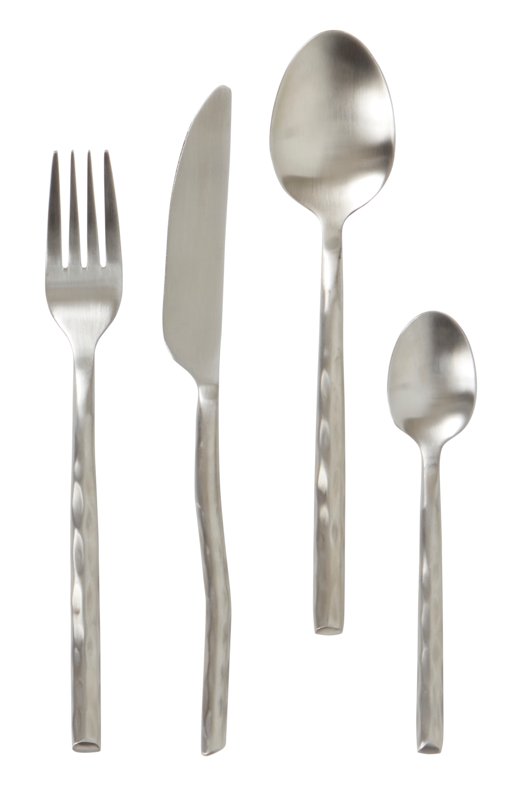 Bestickset i 24 delar av rostfritt stål med matt, läcker finish. Bestickens grepp är effektfullt oregelbundna med en hamrad känsla. Besticksetet innehåller gaffel, kniv, matsked och tesked, 6 av varje. Besticken LYONEL kommer att lyfta dina middagar till en ny nivå.