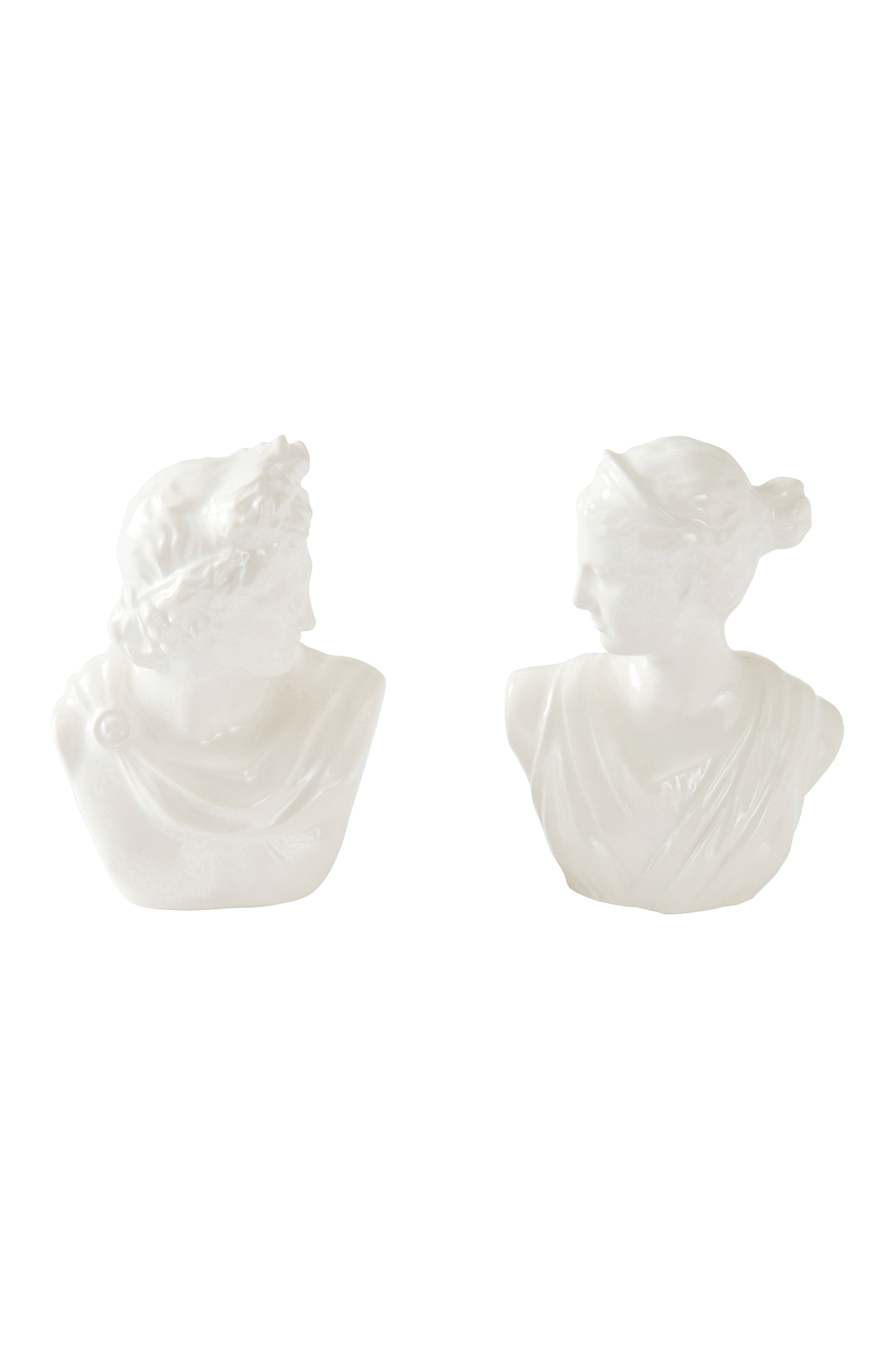 Salt- och pepparkar i dolomitporslin i en stilfull design formade som klassiska byster som ger en tidlös känsla till din dukning. Uppdatera din dukning med ett matchande salt- och pepparkar.