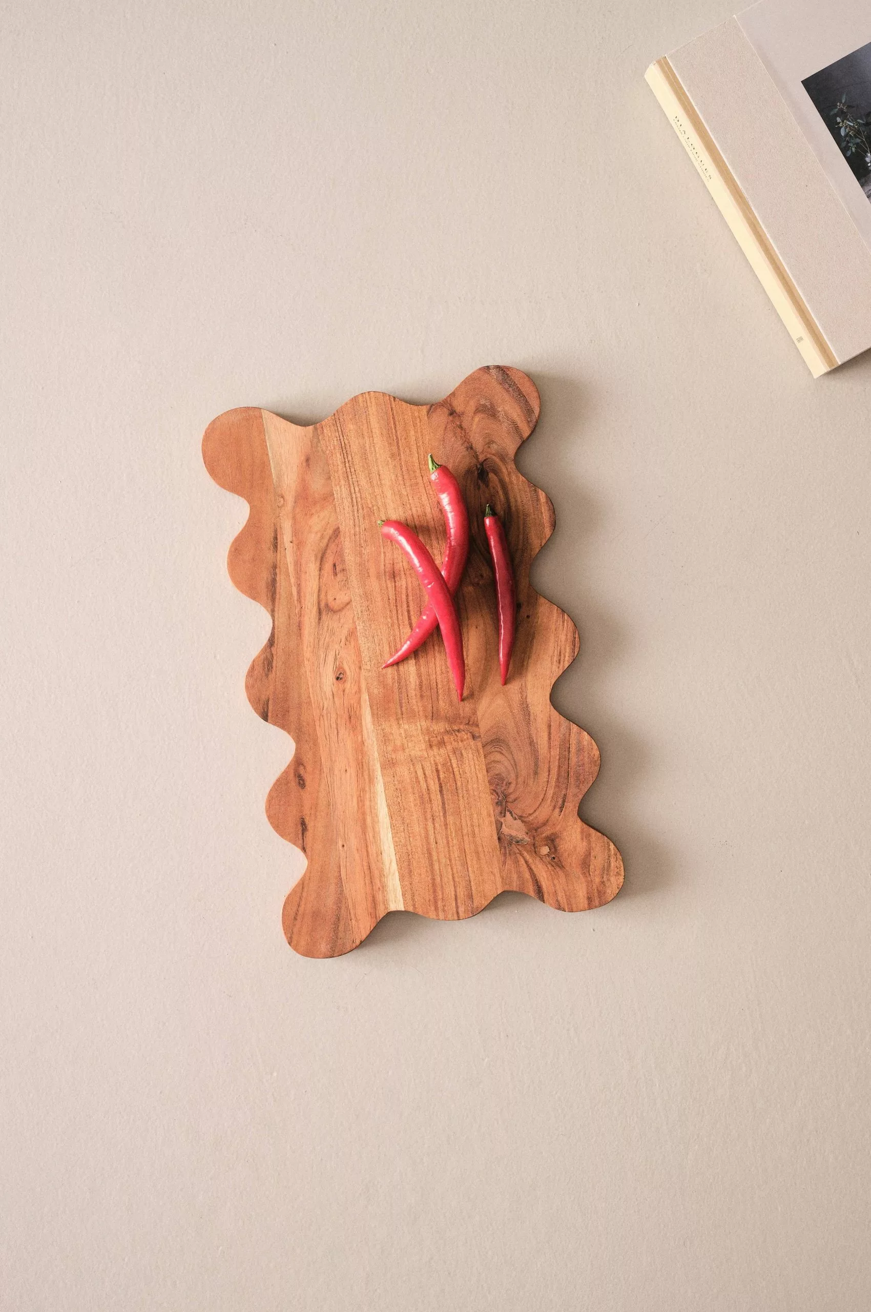 Handgjord skärbräda av FSC-certifierad acacia i naturligt vacker färg med fin ådring. VIVIA har vacker regelbunden vågform och passar fint till uppläggning och servering. Den mjuka ytan är behandlad med vegetabilisk olja. Varje skärbräda är unik då träet har naturliga variationer och de tillverkas för hand.