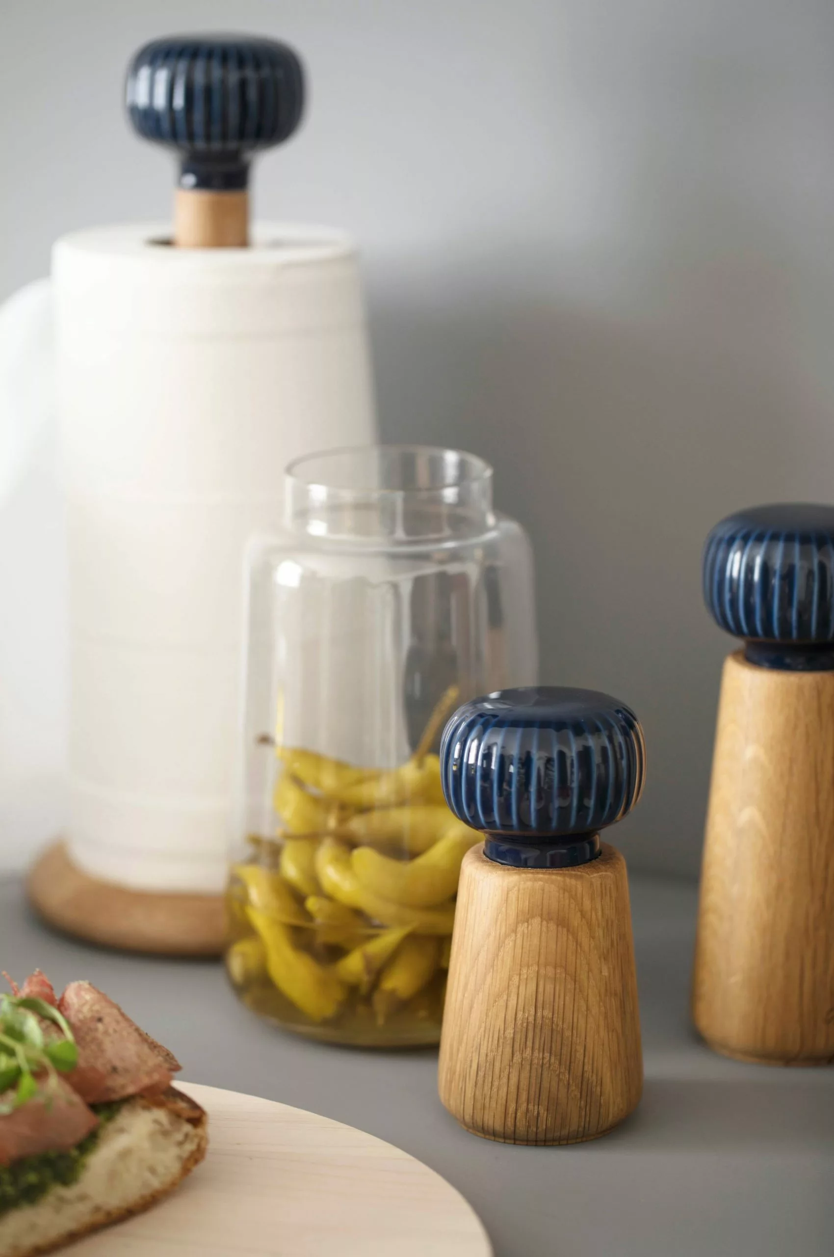 Denna salt-/pepparkvarn Kählers Hammershøi-servis är ett spännande möte mellan de eleganta nordiska materialen keramik och trä. Kvarnen är dekorerad med en fin knopp i white, som förutom att vara en elegant detalj också har en funktionell fördel. De vackra räfflorna gör att kvarnen är lätt att använda och fylla med kryddor. Kombinera med någon av de andra kvarnarna i marble eller anthracite, så att du kan se skillnad på din salt- och peppark…