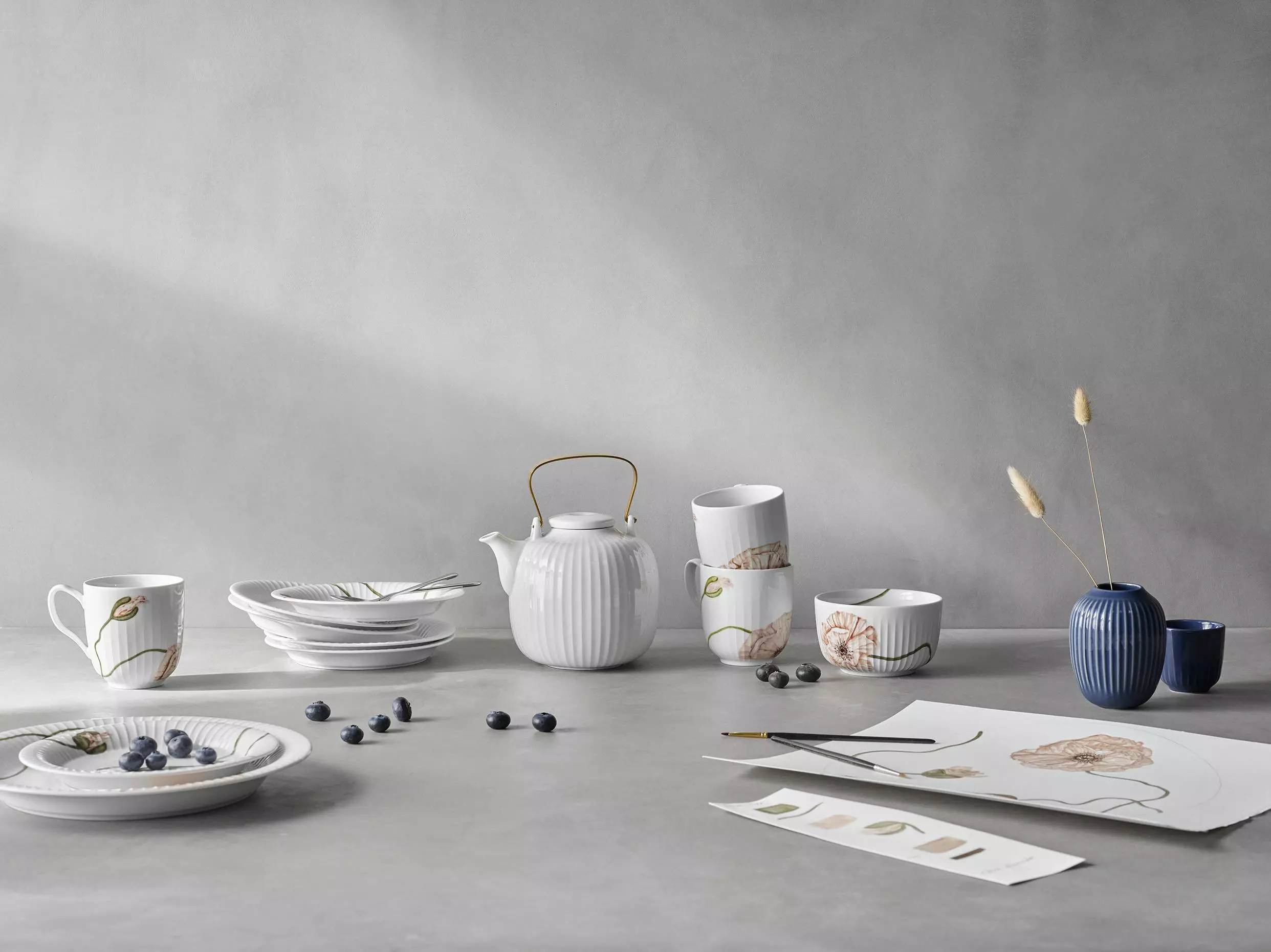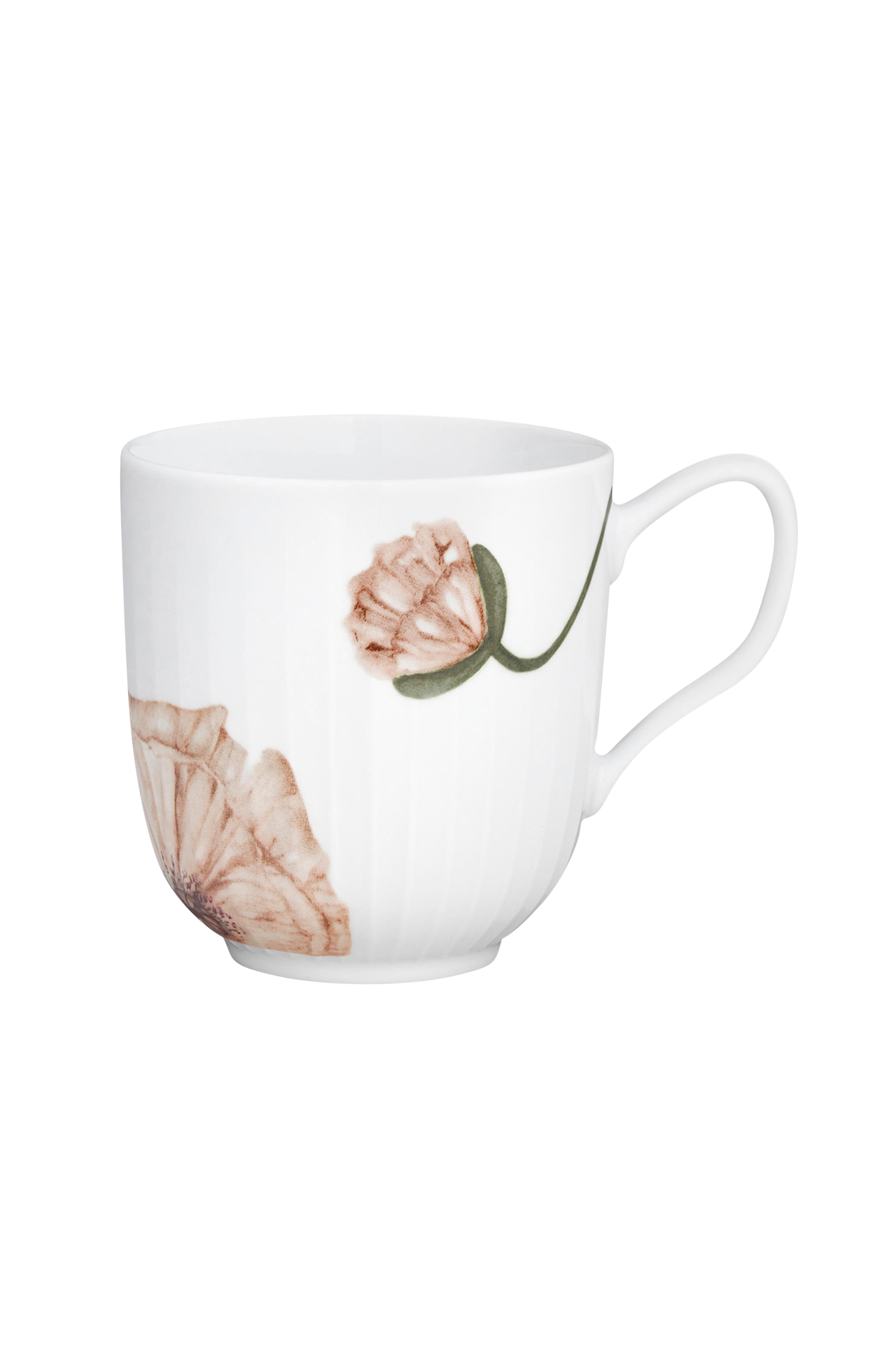 Muggen Hammerhøi Poppy är utformad för att skapa en stilfull dukning med en kreativ och personlig touch. De vackra akvarellteckningarna av vallmor är handmålade av designern Rikke Jacobsen och har sedan överförts till porslinet i fina, feminina färger. Servisen har inget ”upp och ner”, så du kan vända och vrida på de olika delarna och variera bordets uttryck gång till gång. Blanda gärna Poppy-servisen med Hammershøis klassiska vita serv…