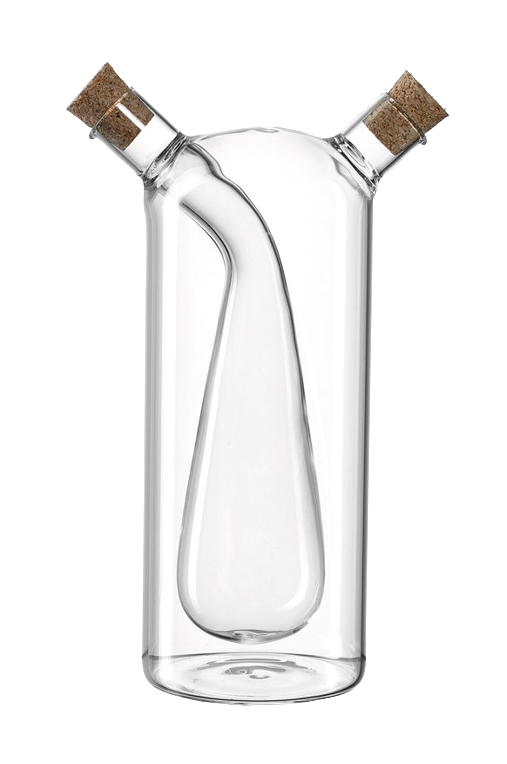 Fin cylinderformad serveringsflaska för olja och vinäger. Tillverkad i glas av Leonardo, glasmästarna Tyskland.