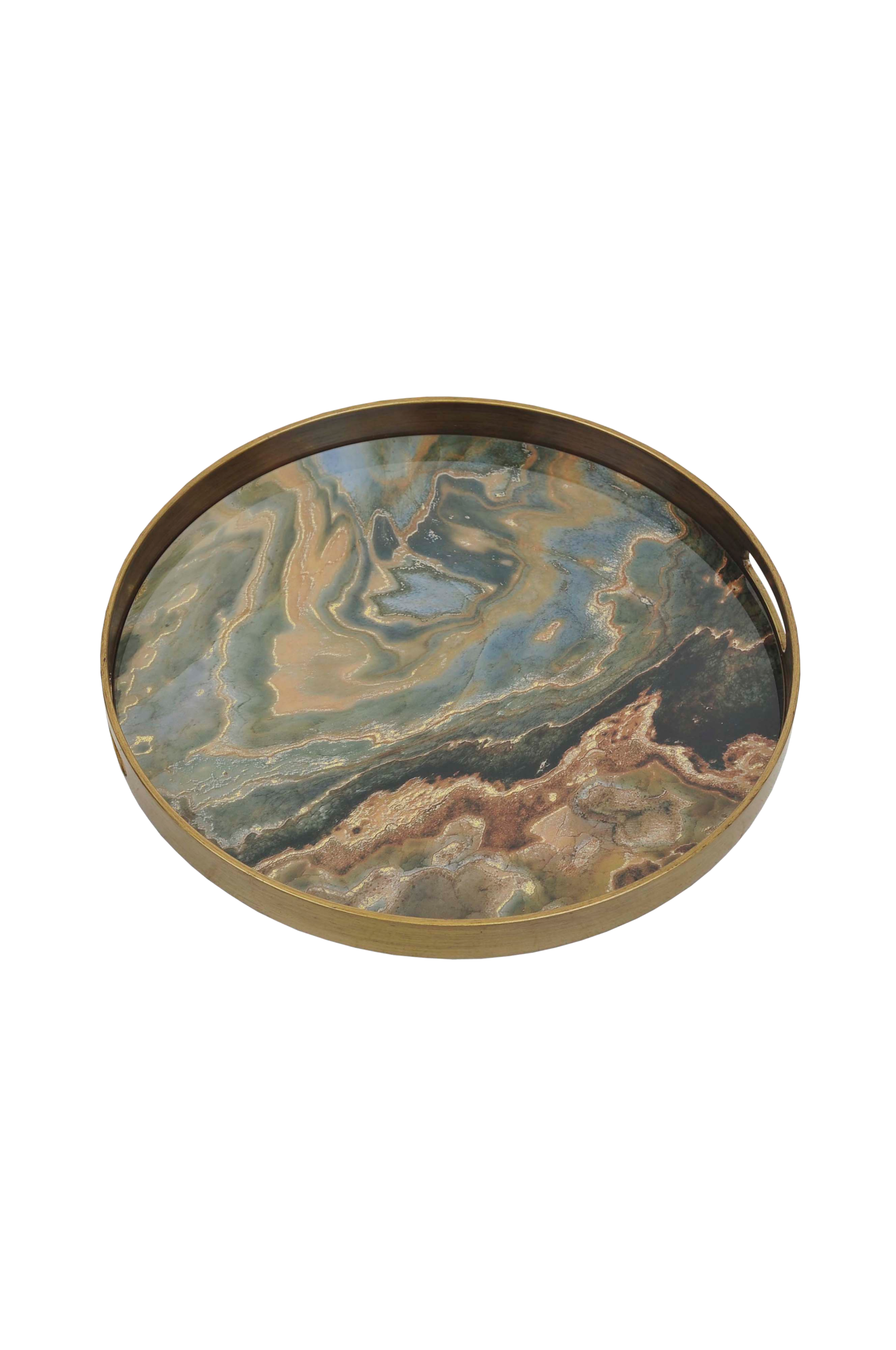 Serveringsbricka med handtag. Brickan har ett vackert mönster och undersidan är beklädd med tyg. Ligger 4 pack