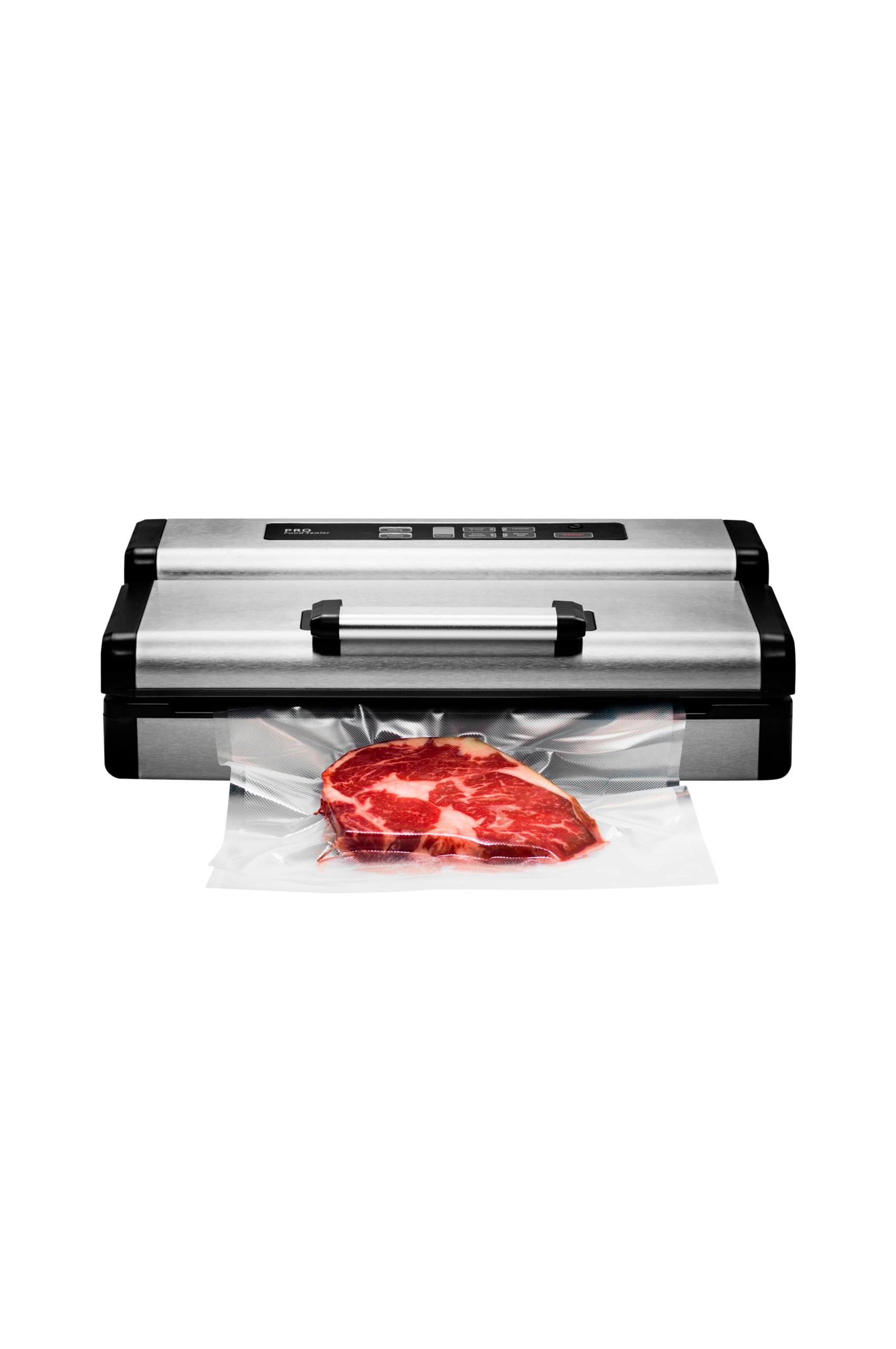 – Vakuumpackare i rostfritt stål – Håller matvaror färska upp till fem gånger längre än konventionella förvaringsmetoder – Skyddar mot frostskador – Marinerar kött och fisk på några få minuter – Passar för vakuumpackning av både torra och flytande matvaror – Gentle inställning för ömtåliga matvaror – För kontinuerlig användning – Med dubbel försegling för extra säkerhet – Påsarna kan användas i mikrovågsugn och i sjudande vatten – 140 W