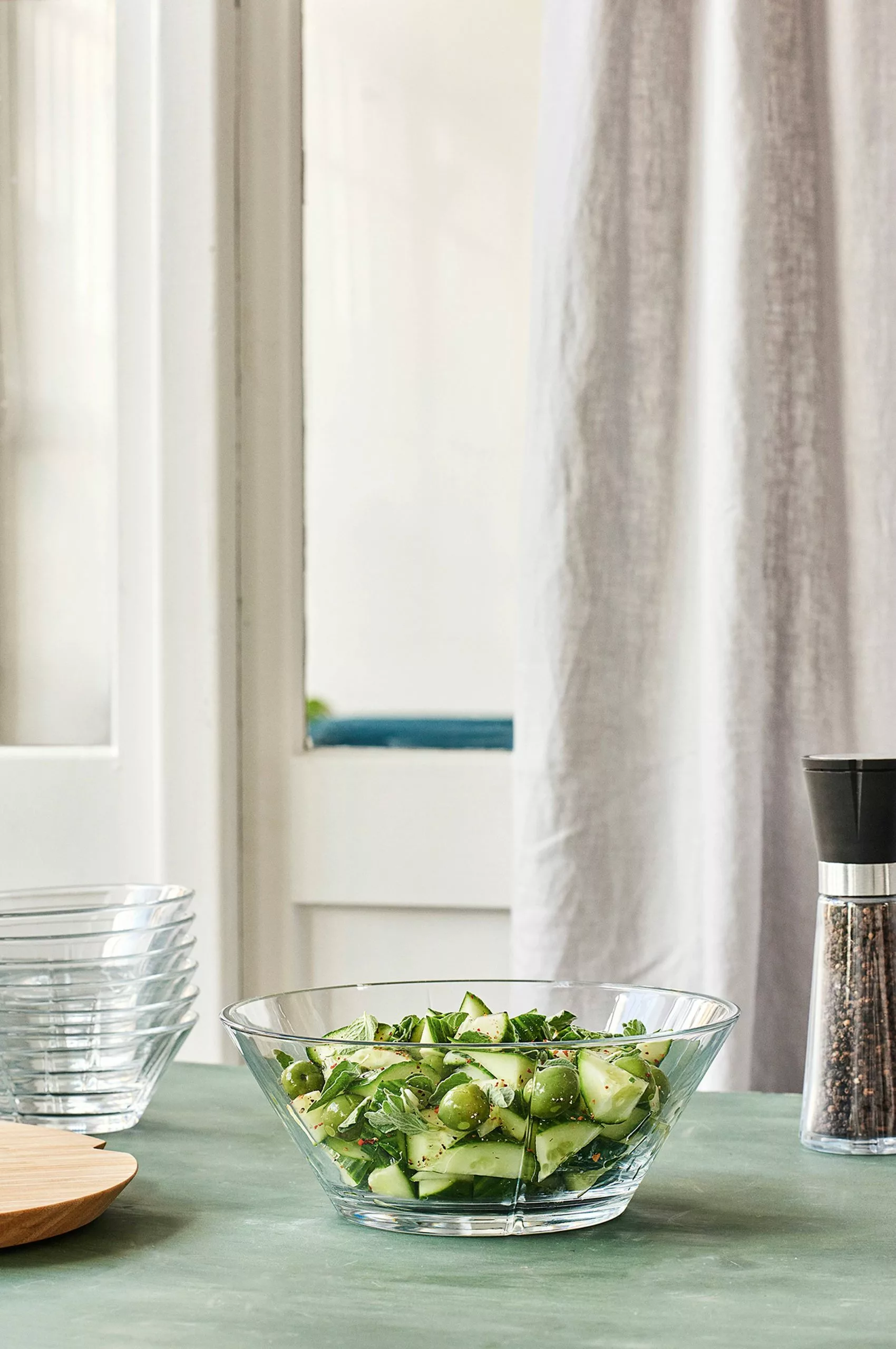 Både storleken och den enkla designen i glas gör den här skålen mycket användbar. Använd den för servering av sallad och mat eller som vispskål i matlagningen. Grand Cru-seriens enkla design skapar en bra grund i köket genom hela livet och är lätt att kombinera med andra serviser.