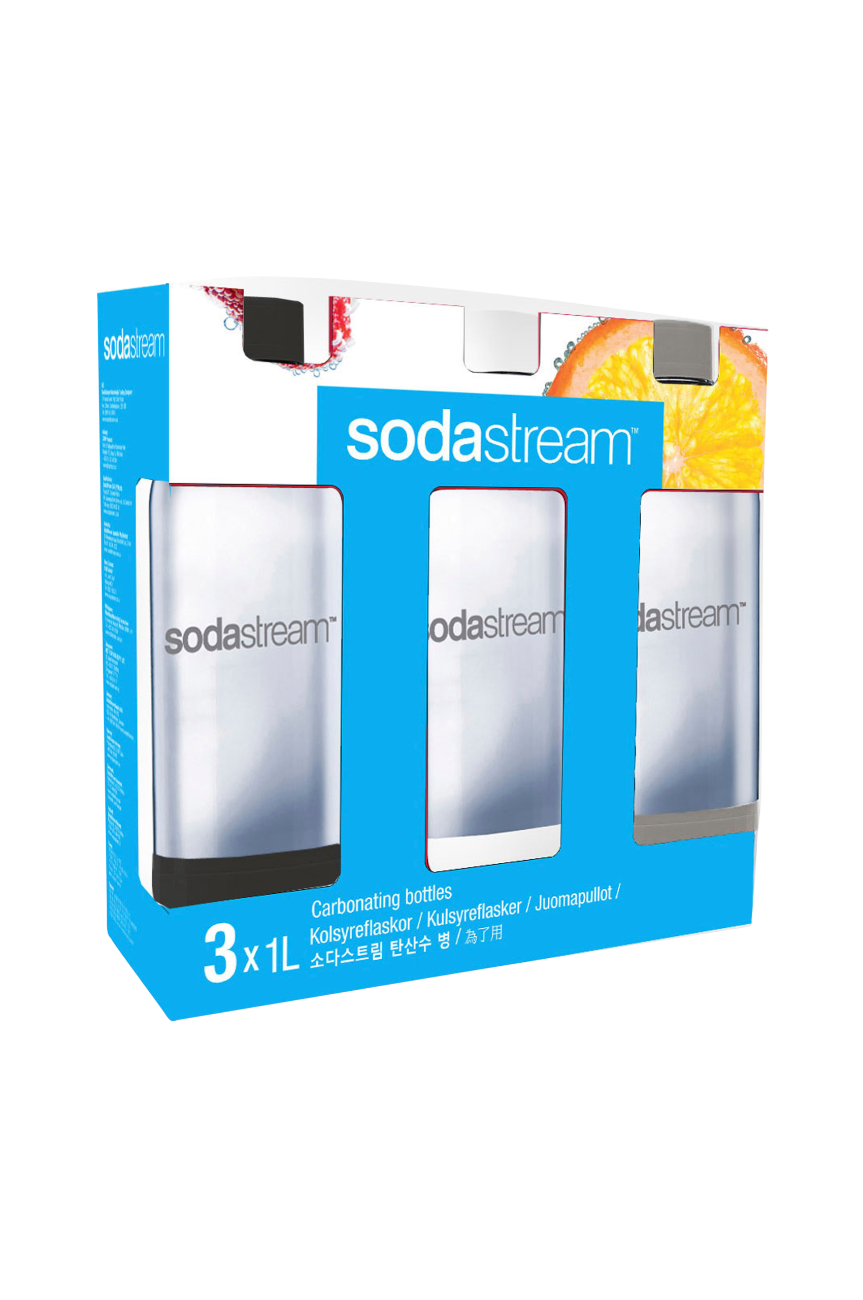Utöka ditt flasksortiment eller ersätt dina gamla flaskor med dessa tre flaskor i grå, svart och vit. Fungerar till alla SodaStream maskiner förutom Penguin och Crystal.