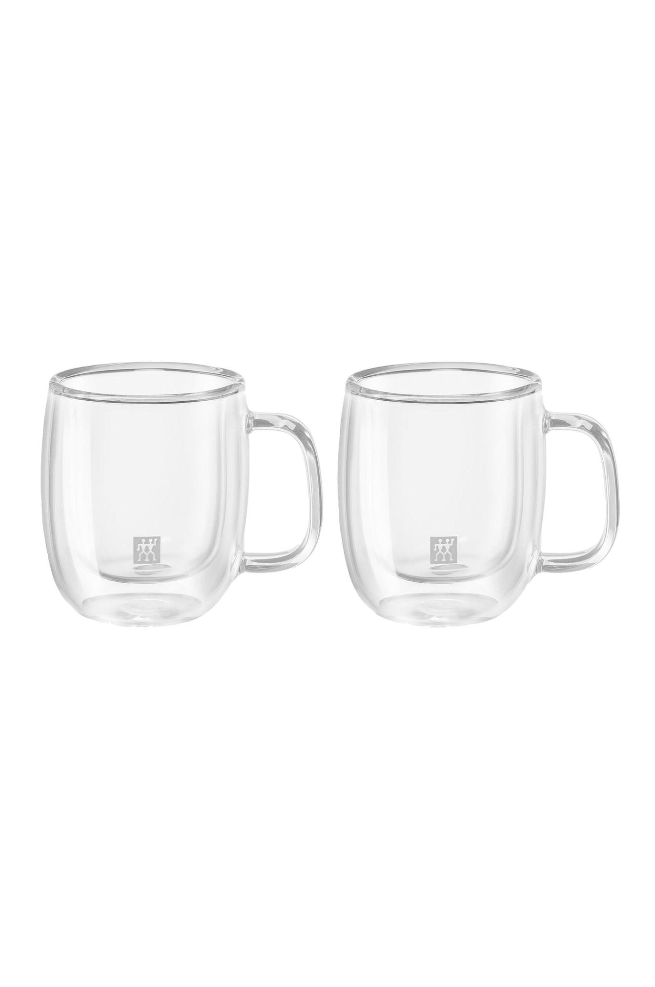Två espressomuggar i handblåst borosilikatglas med dubbla väggar. Detta material är okänsligt för temperatursvängningar och är därför idealiskt för både varma och kalla drycker. Lätta men ändå hållbara. Volym 80 ml.