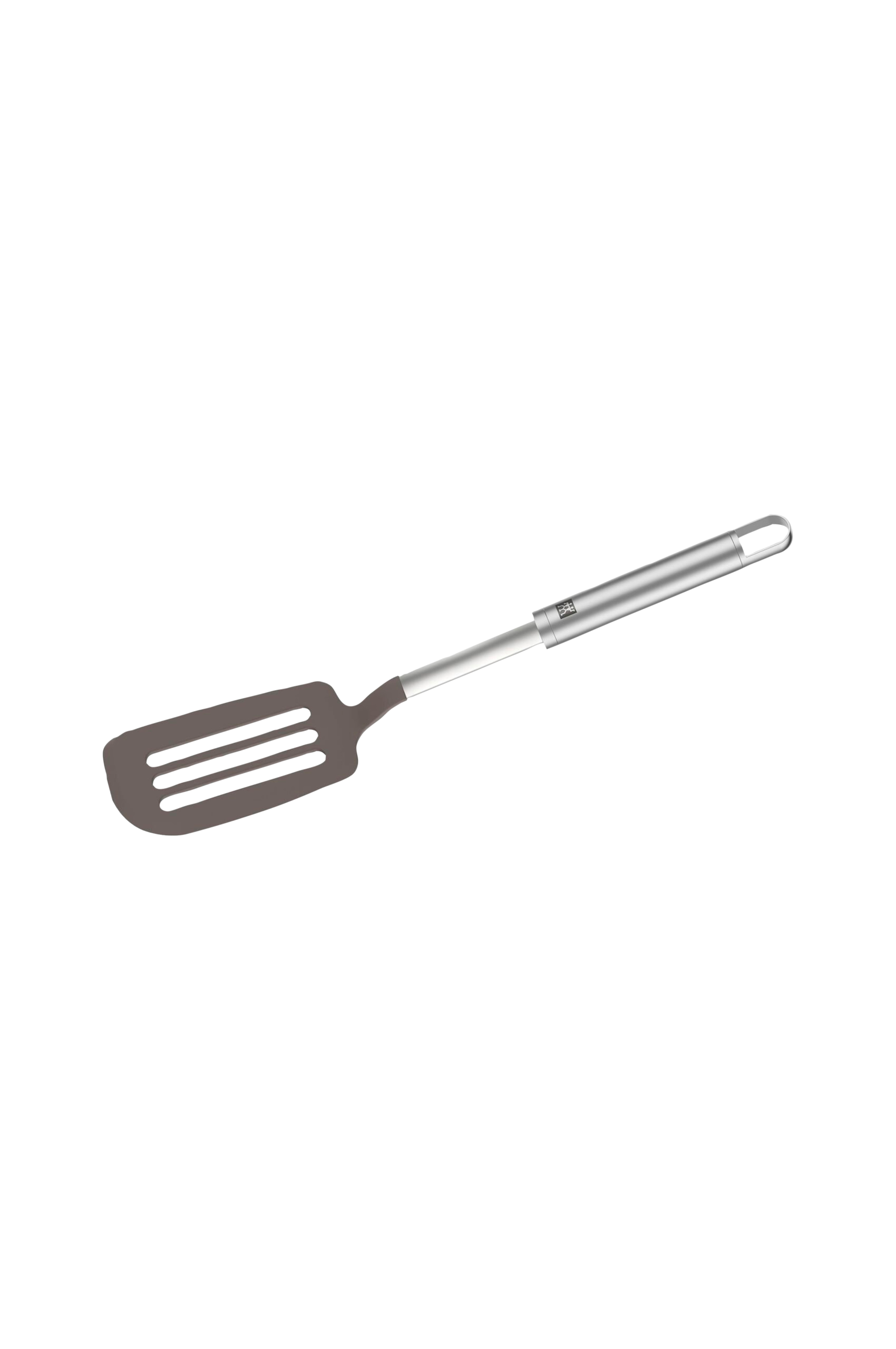 Stekspade med silikon. Silikonet låter dig använda stekspaden i alla typ av grytor och pannor, inklusive gjutjärn- och emaljgrytor. Handtaget är tillverkad i rostfritt stål och har en ögla längst upp för att kunna hängas på krok efter användning. De breda öppningarna på stekspaden släpper igenom matfettet från stekningen. Utvecklad av internationellt kända designers Matteo Thun och Antonio Rodriguez som kombinerar polerat och matt rostfritt stål för att skapa en unik look.