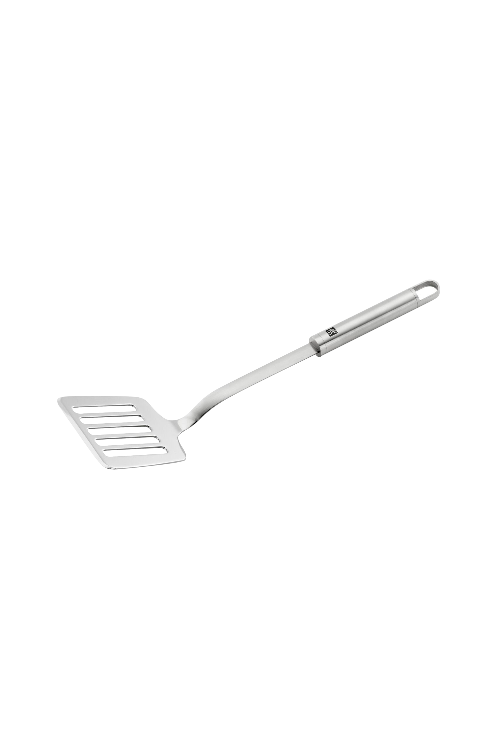 ZWILLING Pro-serien köksredskap är inte bara noggrant utformade, de är väldigt attraktiva och framför allt mycket praktiska. Denna spatel utvecklad av internationellt kända designers Matteo Thun och Antonio Rodriguez kombinerar polerat och matt rostfritt stål för att skapa en unik look. Samtidigt är materialblandningen exceptionellt praktisk; stammens rostfria stål av satinfinish är lätt att hantera, medan den polerade främre änden är gjord av en enda bit för att vara mycket smidig och sömlös. Den åtskilda kanten gör det enkelt att dela mat och de breda slitsarna gör att stekfett lätt kan rinna igenom. Spateln är idealisk för köksredskap i rostfritt stål och gör att du enkelt kan vända, lyfta eller ta bort mat. När du har använt spateln kan den rengöras i diskmaskinen och hängas från sin slinga på köksskenan.