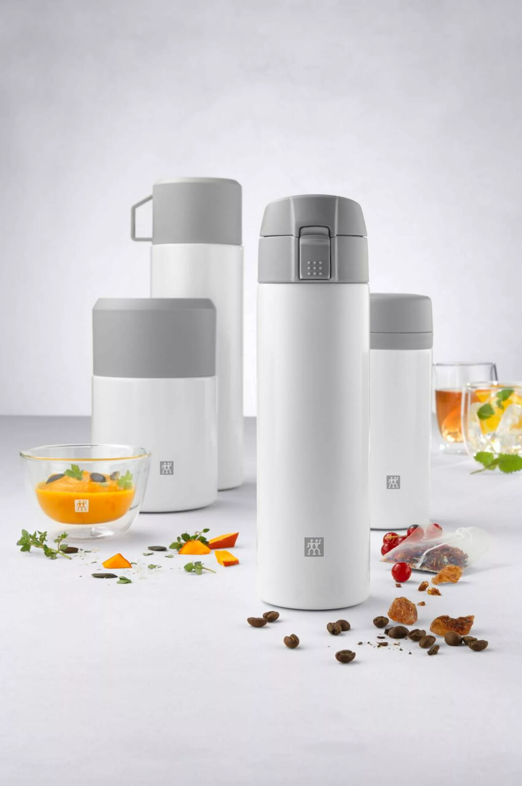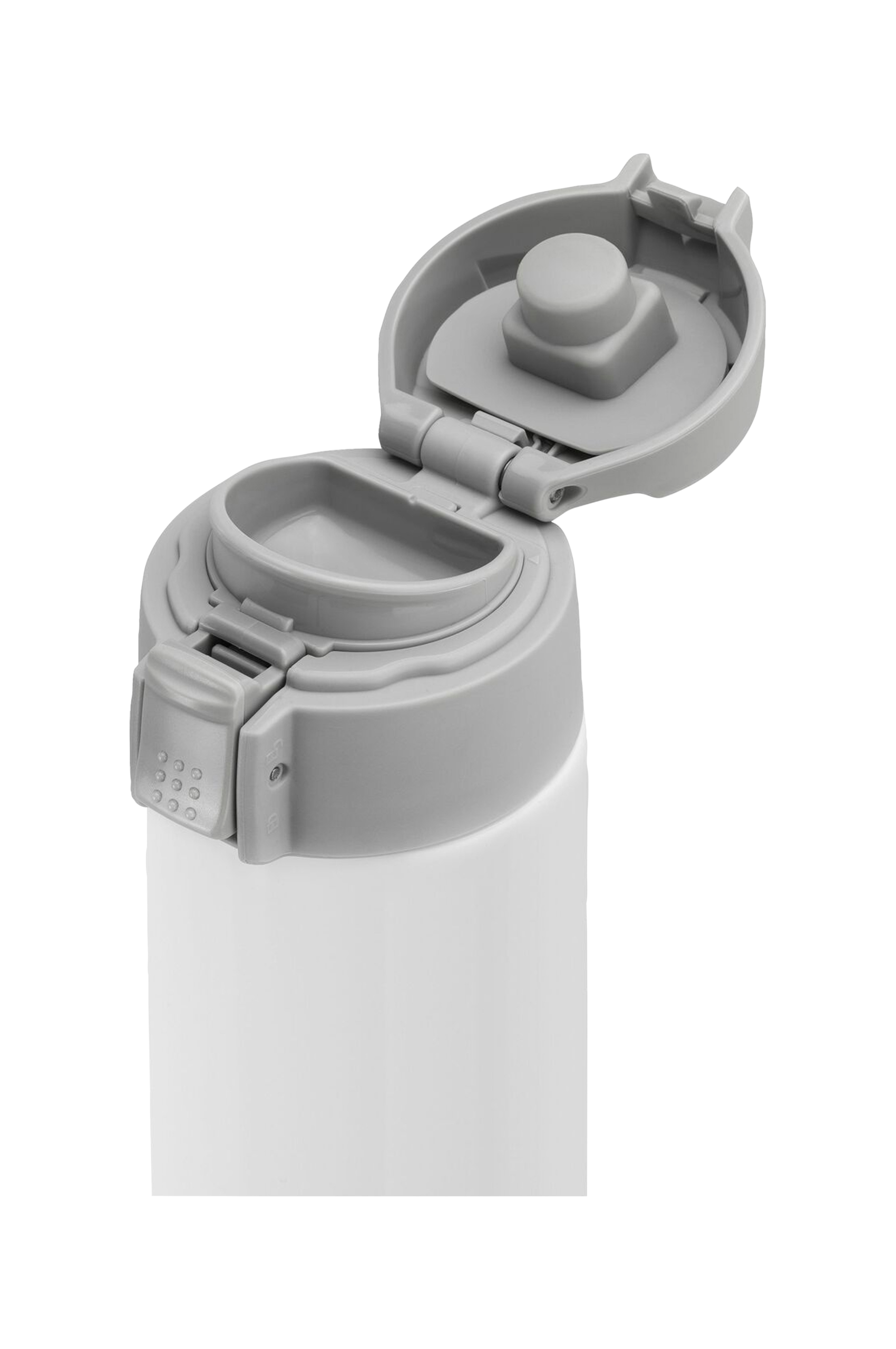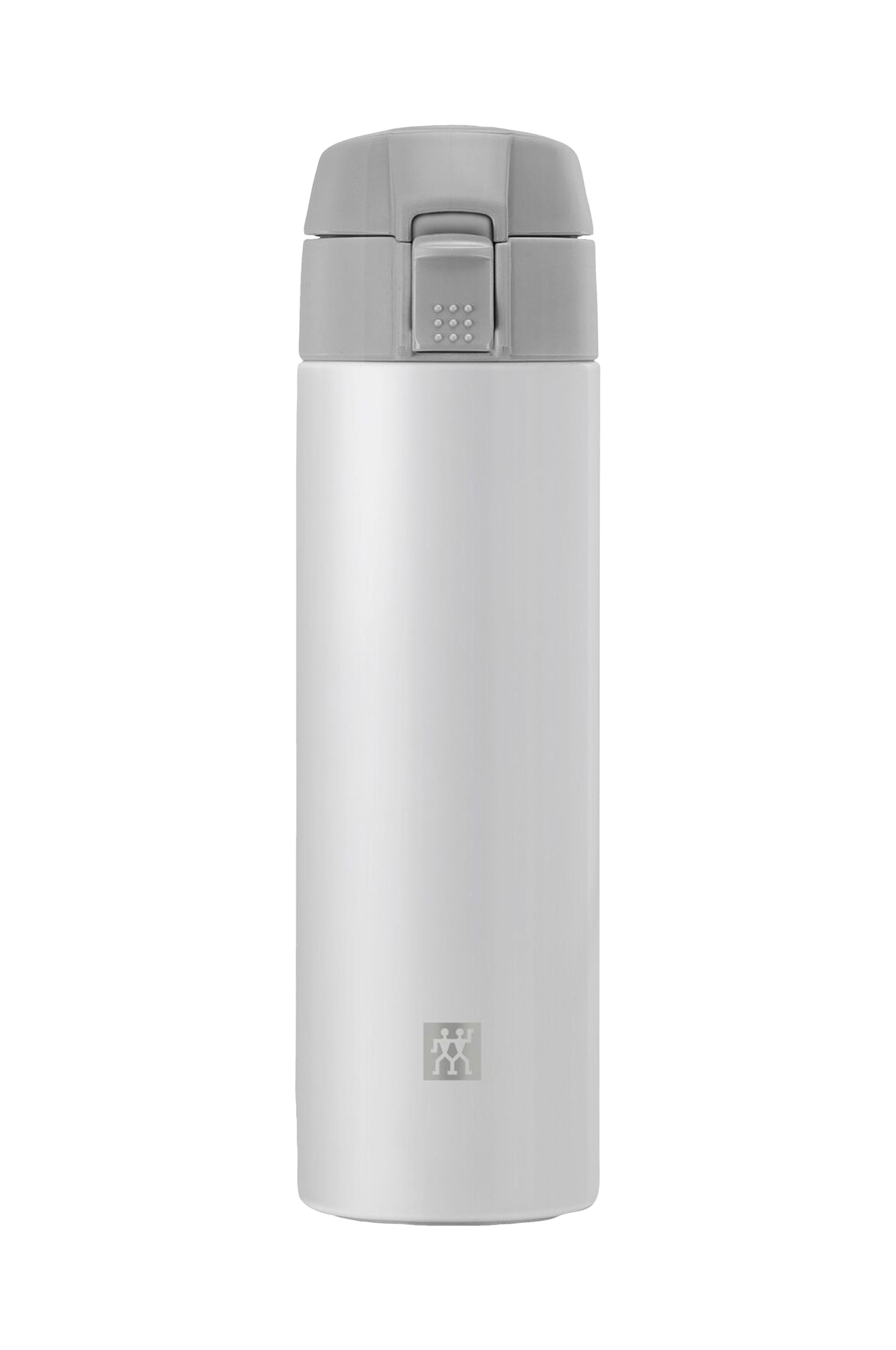 Denna termos håller drycker som kaffe eller te varma i upp till 7 timmar, och kalla drycker kylda i upp till 12 timmar. Den rymmer 450 ml och är lagom stor för att bära med sig i väskan. Flaskan har ett smart one touch-öppningslock som är läckagesäkert. Bör diskas för hand.