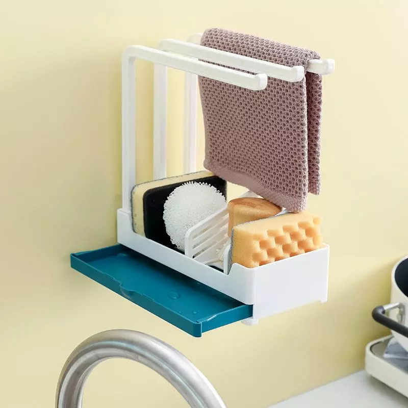 Kök Avloppsduk med dubbla syften Gratis stansning Tvålställ Väggmonterat svampställ för förvaring av multi för diskbänksfack|Förvaringshållare och ställ (blå)