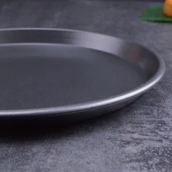 Rund Förtjockad Pizzabricka Non-Stick Bakpanna Hem Kök 2pcs & Black