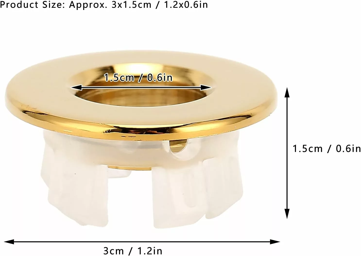 Matériau du produit: la bague de trop-plein d’évier est fabriquée en laiton de haute qualité + matériau ABS, le revêtement de surface est lumineux et lumineux, résistant à l’usure et à la corrosion, la taille du produit est d’ omgivning 3 x 1,5 cm, et le