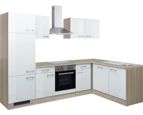 Vinkelköket (280x170xm) består av:, Inbyggnadsskåp 60 cm – 3 dörrar – 1 nisch för integrerat kylskåp (nischhöjd 88 cm) 1 hyllplan – 1 ventilationsgaller, Bänkskåp 50cm – 1 låda – 1 dörr – 1 hyllplan, Inbyggnadsskåp för spis 60cm – 1 nisch för standardinbyggnadsspis – 1 fast front, Hörnbänkskåp (ställmått 110x60cm) – 1 dörr – 1 låda – 1 hyllplan – 1 hörnpasslist, Diskmaskinspaket (består av: 1 frontpanel för helintegrerad diskmaskin – 1 handtag – 1 sockel 60 cm bred – 1 bänkskiva 110×60 cm), Bänkskåp för diskbänk 50cm – 1 dörr, Överskåp 50cm – 1 hyllplan – 1 dörr – höjd 55cm, Överskåp 100cm – 1 hyllplan – 2 dörrar – höjd 55 cm, Bänkskiva 220x60cm (den 2:a bänkskivan finns i diskmaskinspaketet, se ovan)